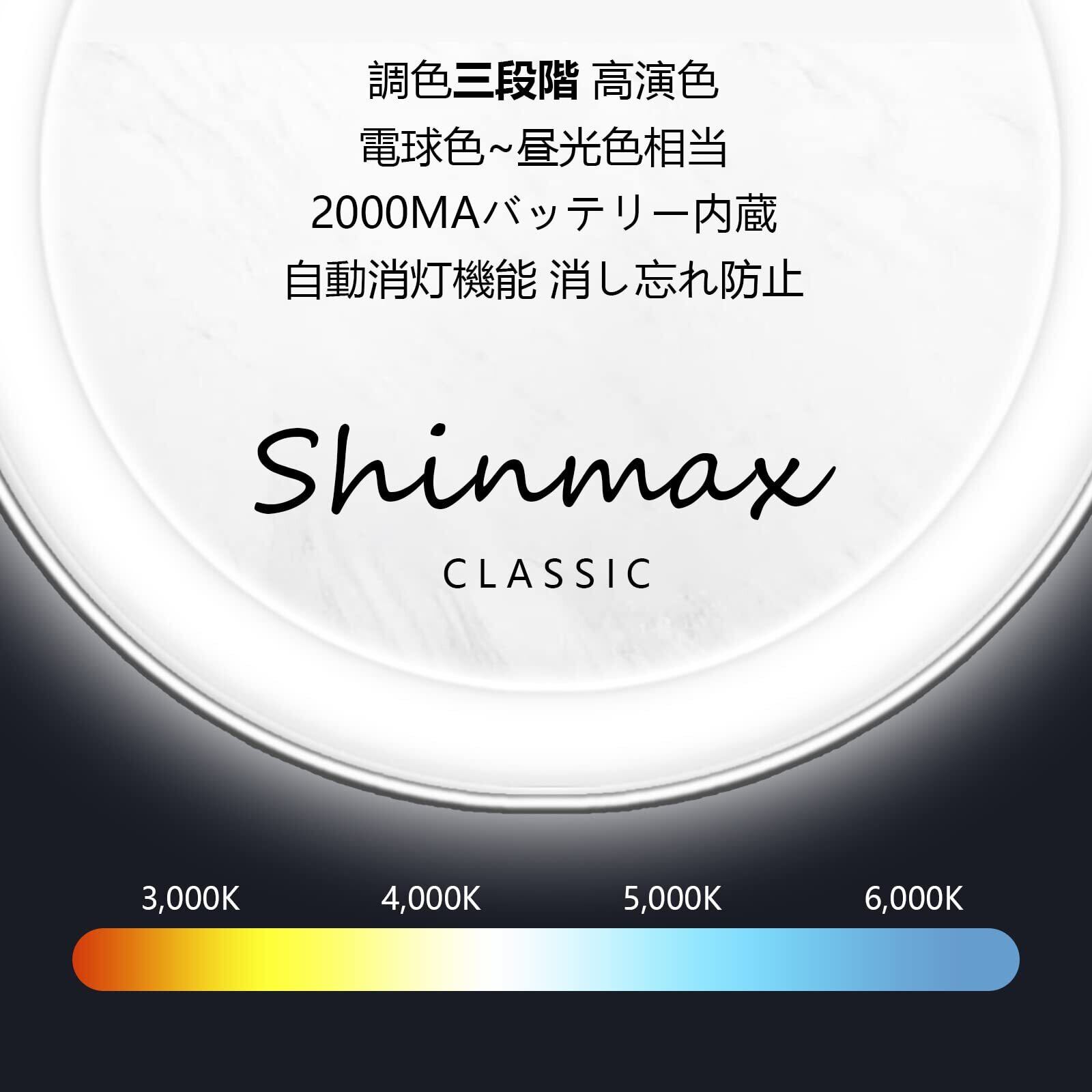 【自動消灯機能】:自動消灯機能は1時間以内無操作と自動的に消灯します。普通のライト付きミラーはほぼ5分ぐらい無操作と自動的に消灯します、または消灯機能ありませんでどちらもすごく面倒です。Shinmaxはメイクの時間を考えて、自動消灯機能を1時間に延長します、省エネルギーの同時に手間が省け。