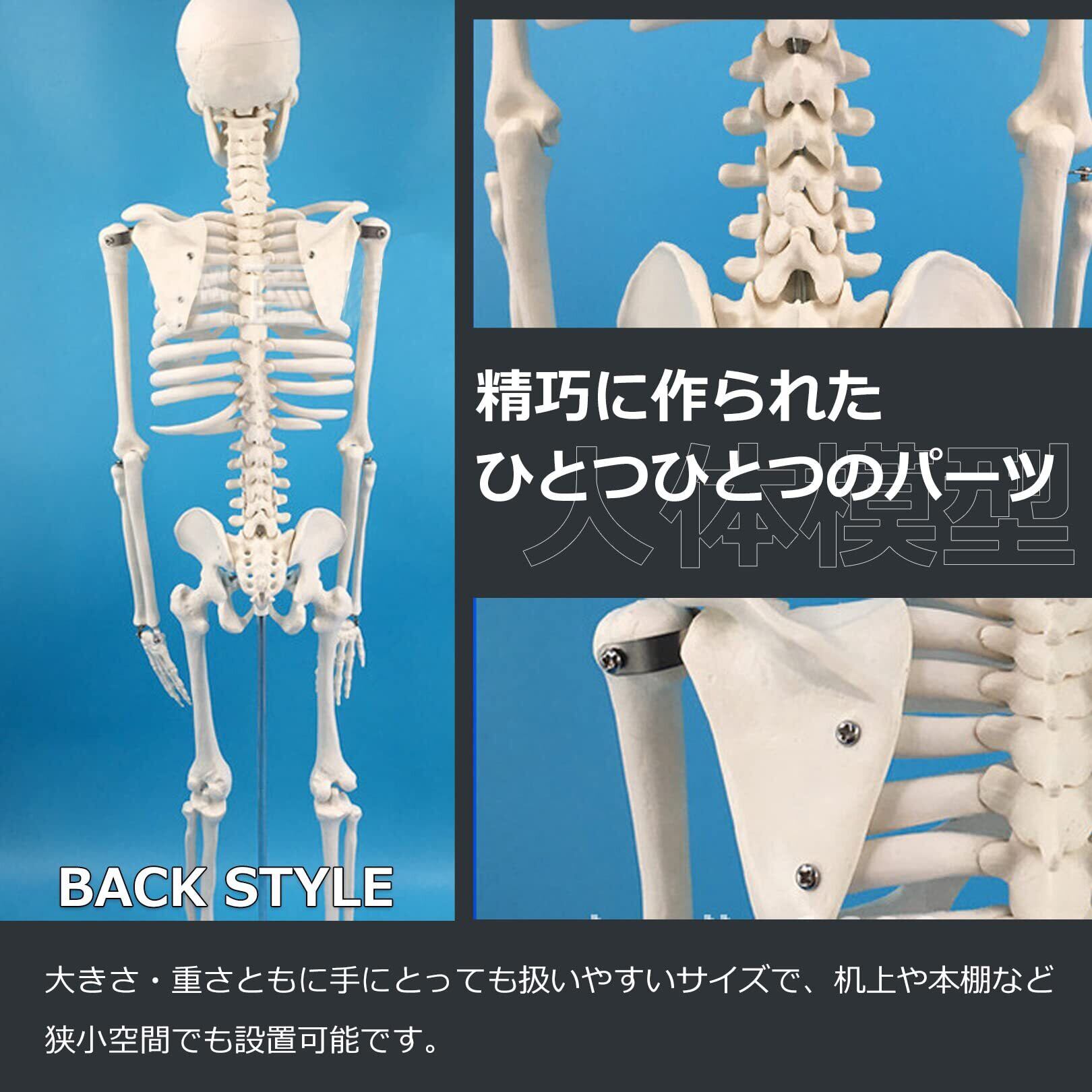 人体模型は、全身骨格模型の1/2モデル。大きすぎず小さすぎない程よいサイズ感。関節の可動域が人体と同じなので整骨院、整体院、サロン、医学生、理科教材、専門家から初心者まで幅広くお使いいただけます。