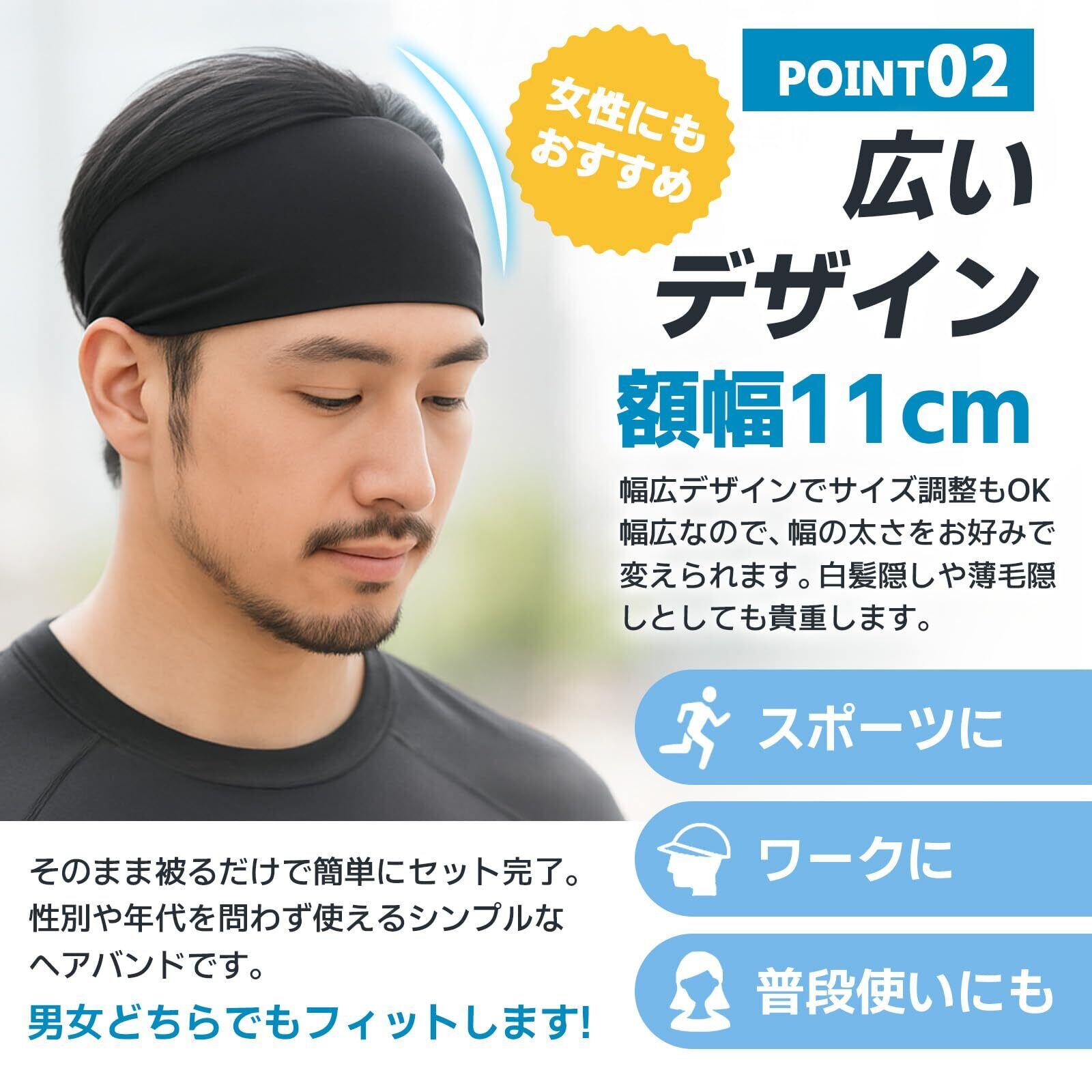 ヘアバンド メンズ 額幅11cm ヘッドバンド 汗止め スポーツ 幅広 薄型 バンダナ ヘアターバン ワイド 男女兼用 3枚セット