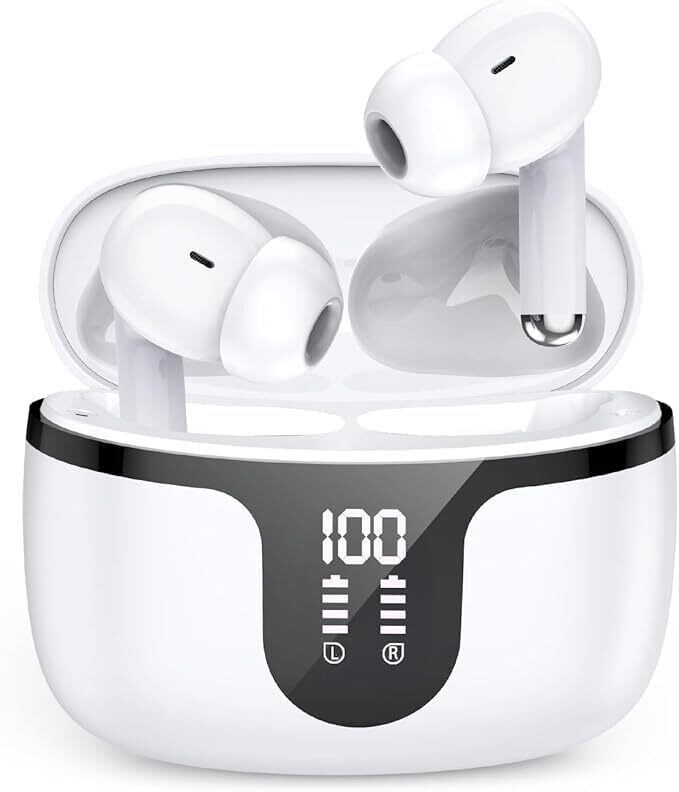 2025【イヤホン Bluetooth5.4 音質強化型】 ワイヤレスイヤホン Bluetooth イヤホン ブルートゥース イヤフォン カナル式 ENC通話ノイズキャンセリング LEDディスプレイ マイク付き 自動ペアリング 快適な装着感 最大40H音楽再生 ハンズフリー通話 タッチ操作 日語音声ガイド 重低音 片耳/両耳 スポーツ/iOS/iAndroid対応(Bright White)