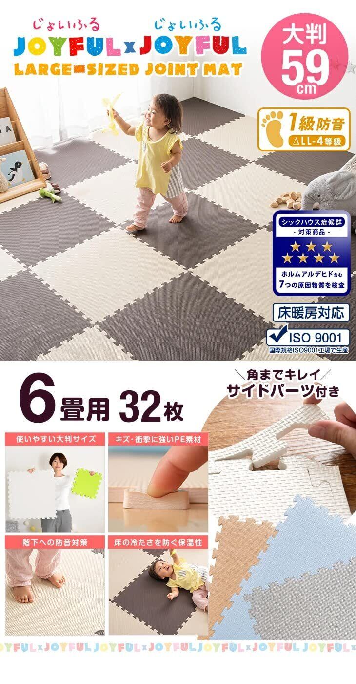 タンスのゲン ジョイントマット 1級防音 大判59cm 厚み10mm 6畳用 32枚組 防音 保温性 床暖房対応 ノンホルムアルデヒド サイドパーツ付き ブラウン×ベージュ 18700001(79289)