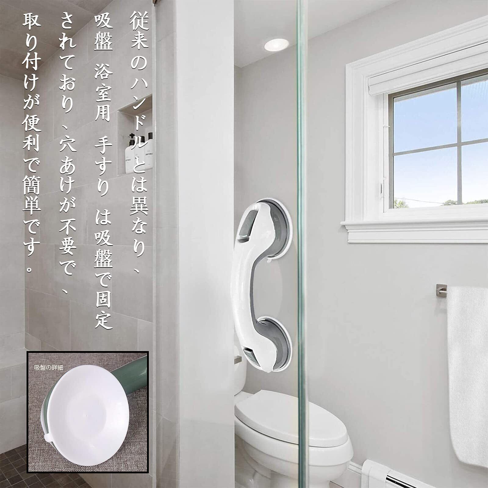 トイレ用手すり セーフティハンドル 吸盤 浴室用 手すり お風呂用 介護 高齢者 転倒防止 トイレ 階段 玄関 滑り止め 浴槽手すり 2個セット,Bocotojpで購入してください