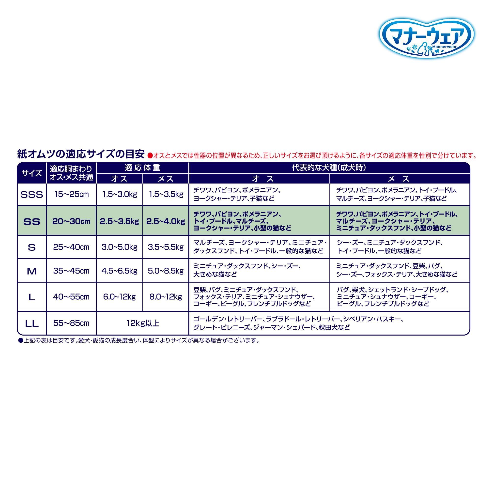 マナーウェア 犬用 おむつ 長時間オムツ SSサイズ 超小~小型犬用 240枚(30枚×8) おしっこ ペット用品 ユニチャーム[ケース品]