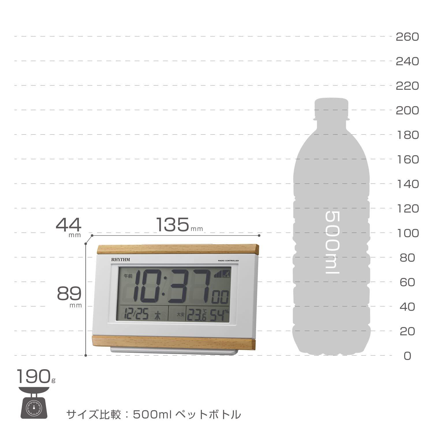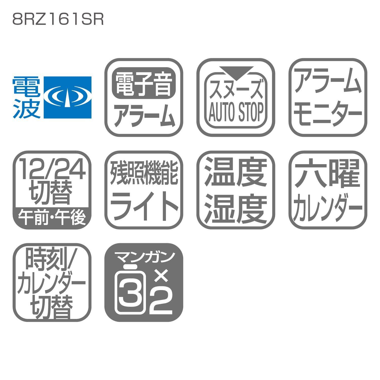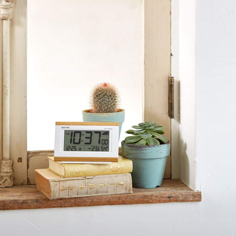 リズム(RHYTHM) 目覚まし時計 電波時計 電子音アラーム 温度 湿度 カレンダー 六曜 ライト付き ライトブラウン 8.9x13.5x4.4cm 8RZ161SR07