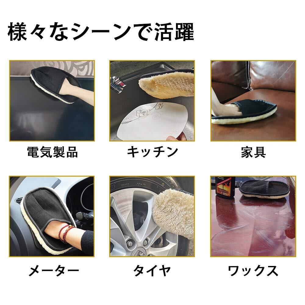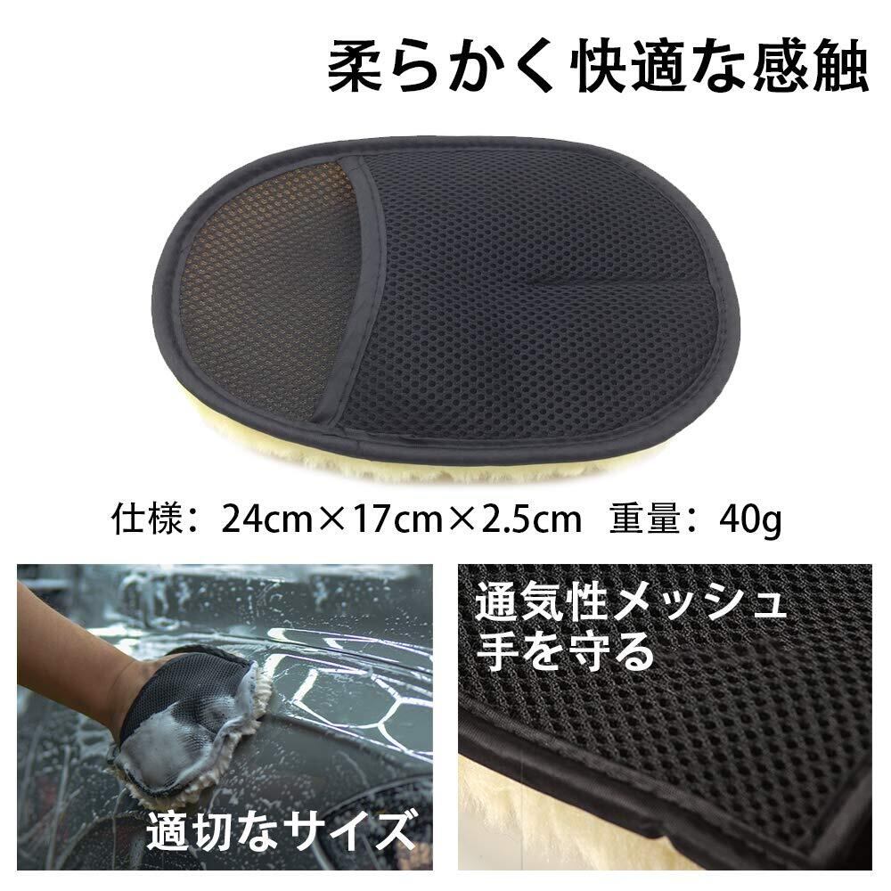 ムートンカーウォッシュグローブ カーウォッシュグローブセット 洗車スポンジ 洗車グローブ 泡立ちやすい 傷防止 (2)