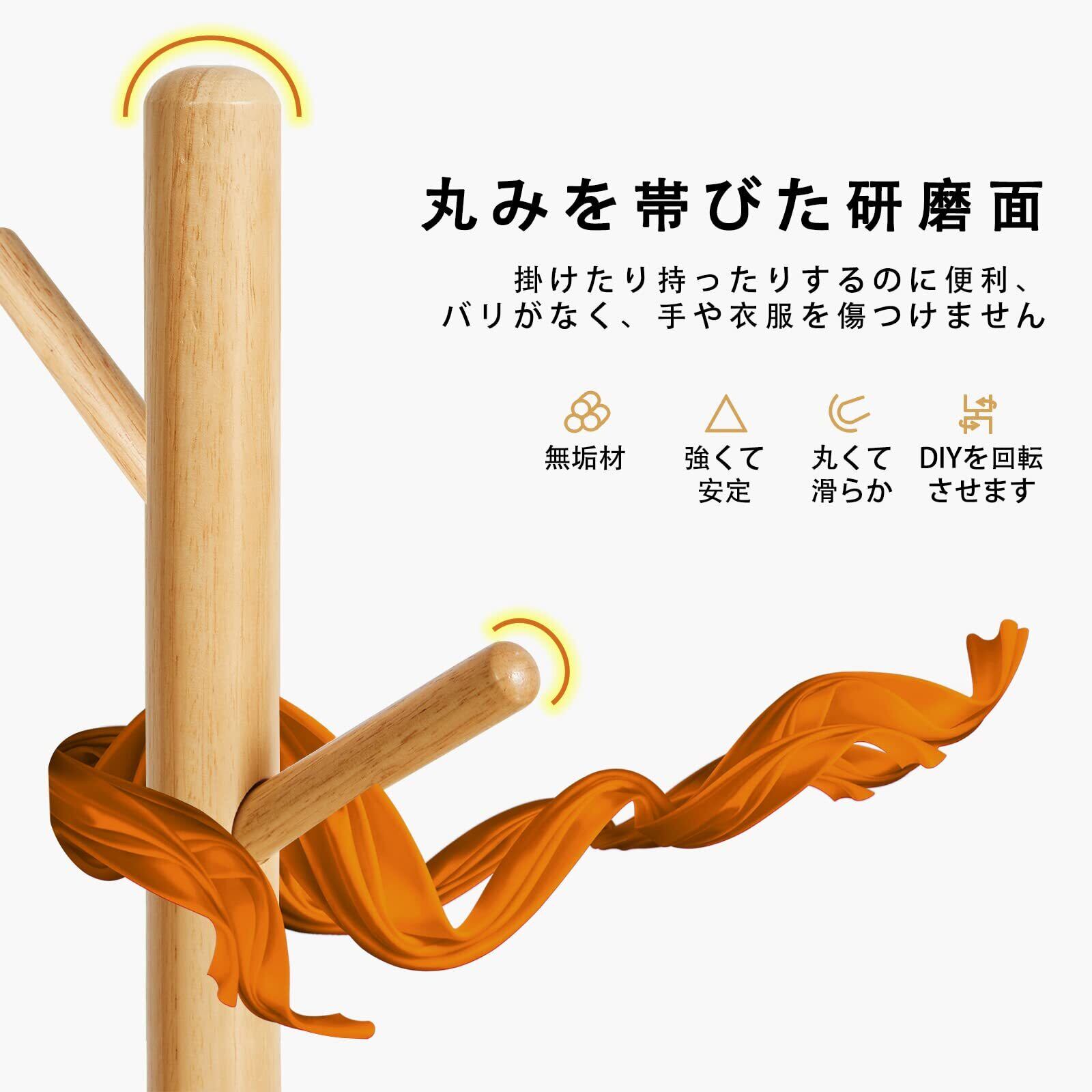 Aibiju ポールハンガー コートハンガー 木製 高さ調節可能 4段 8つのフック 服掛け 洋服ラック 高さ182cm 省スペース 組立て簡単 木の色 YD-1004