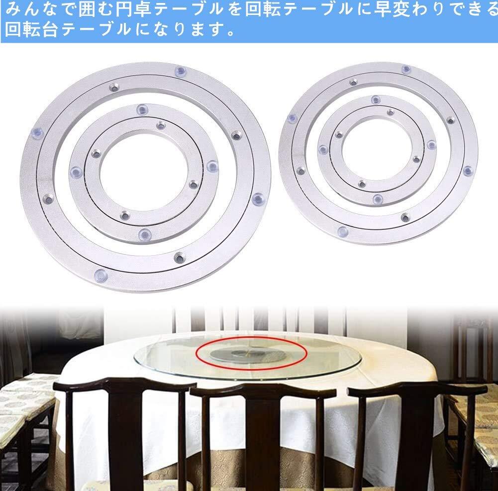 【360°回転】ターンテーブルベアリングを360°回転させることができ、便利なスイベルデザインはテーブルに最適です。みんなで囲む円卓テーブルを回転テーブルに早変わりできる回転台テーブルになります。 家族や中華テーブルやたくさんの場所で大活躍。ケーキデコレーション、TVモニタースタンド、ケータリングサービス、食品ディスプレイ、サービングにも最適です!