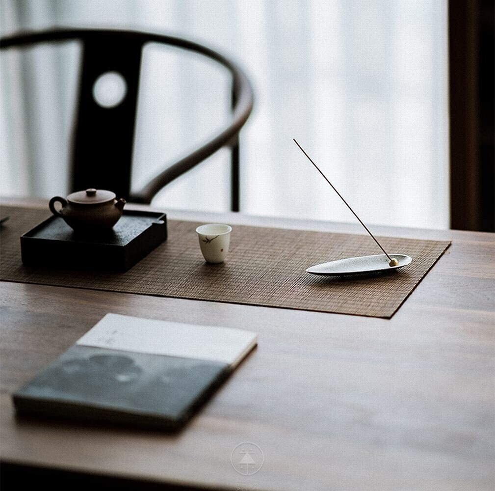 【角度調整できるお香受け構造】 お香を差し込む玉受け部分には溝付きで、挿しやすく、灰が飛び散りにくい安心設計。直径約3mmの穴を採用し、市販のお線香(最大約13cm)にピッタリ対応 。 長さ14cm×幅5cm×高さ1cmとミニサイズです。