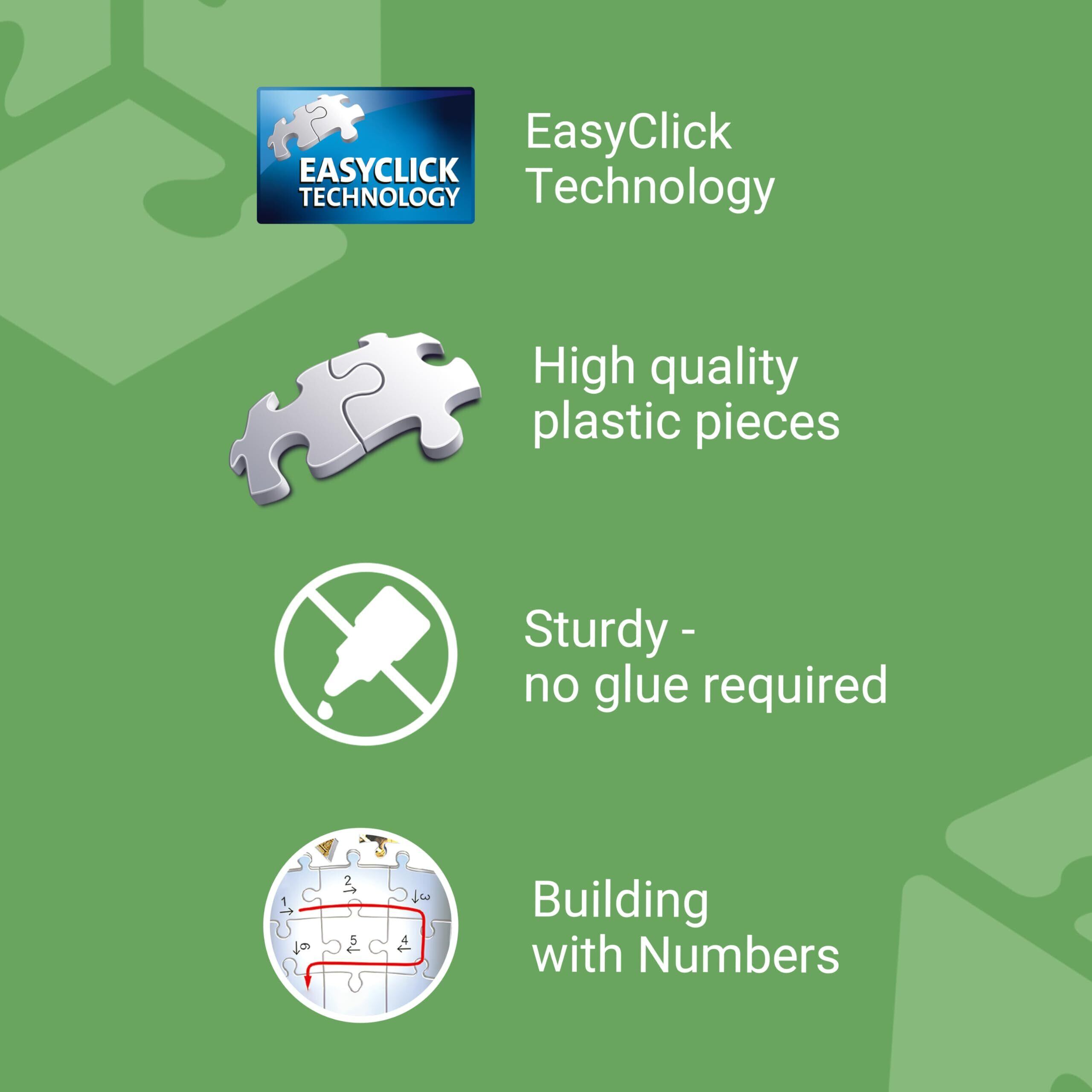 187ピースの立体パズル。3Dパズルはプラスチック製のピースで組み上げる立体パズルです。ピースの裏には数字と矢印がついており、順番に矢印が示す方向へ次のピースを組んでいくことで完成します。接着剤を使わずに組み立てることができます。ピース数:187ピース(パズルピース×180、支柱および展示台部品×6、作業台×1)対象年齢:6歳から