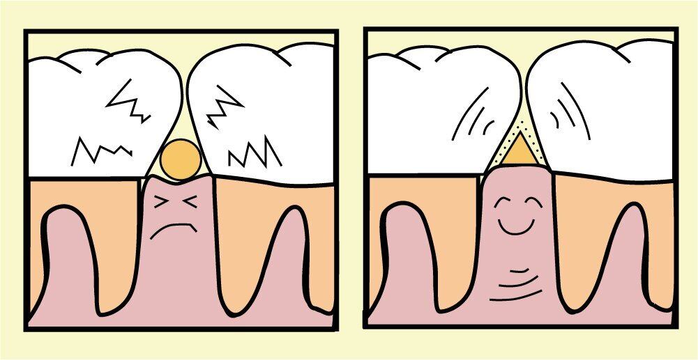 歯間部の狭い部分へは、無理に入れないで下さい。