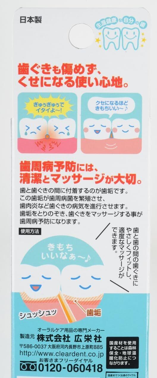 三角ようじは、歯間の清掃と同時に三角形の底辺が適度な歯ぐきのマッサージとなります。
