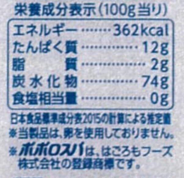 カロリー:100g当り、362Kcal