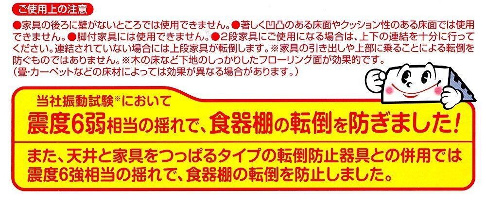 さらに安定感を増すために、天井と家具を突っ張るタイプの転倒防止器具との併用をおすすめします