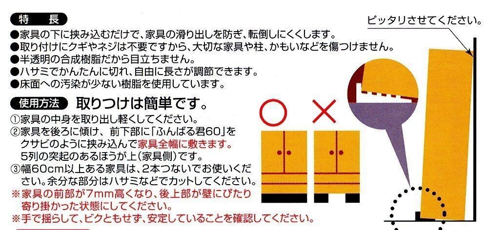 タンスや食器棚の下に敷くだけで安心! 転倒を防止!