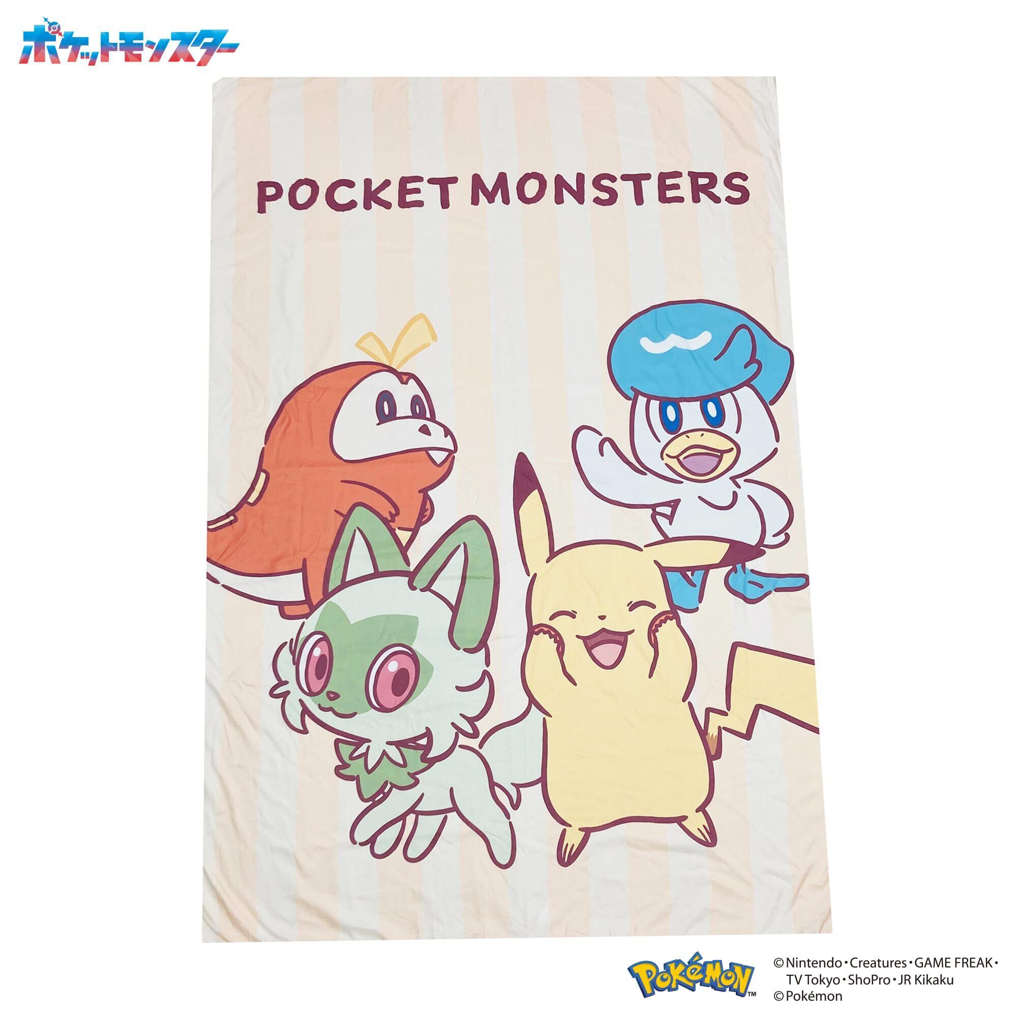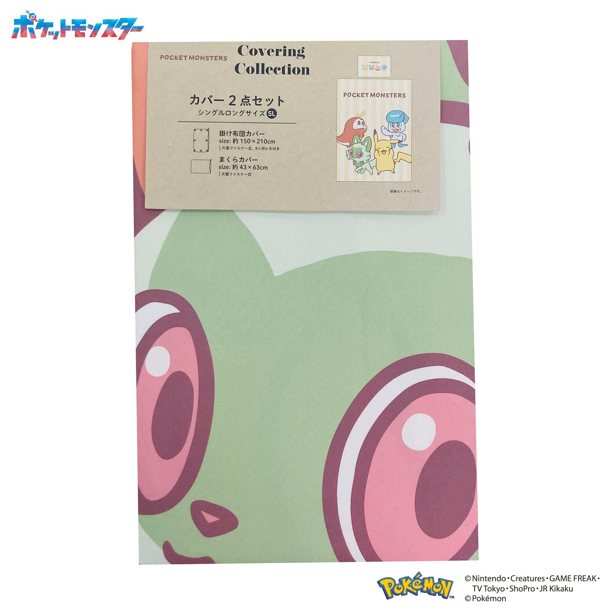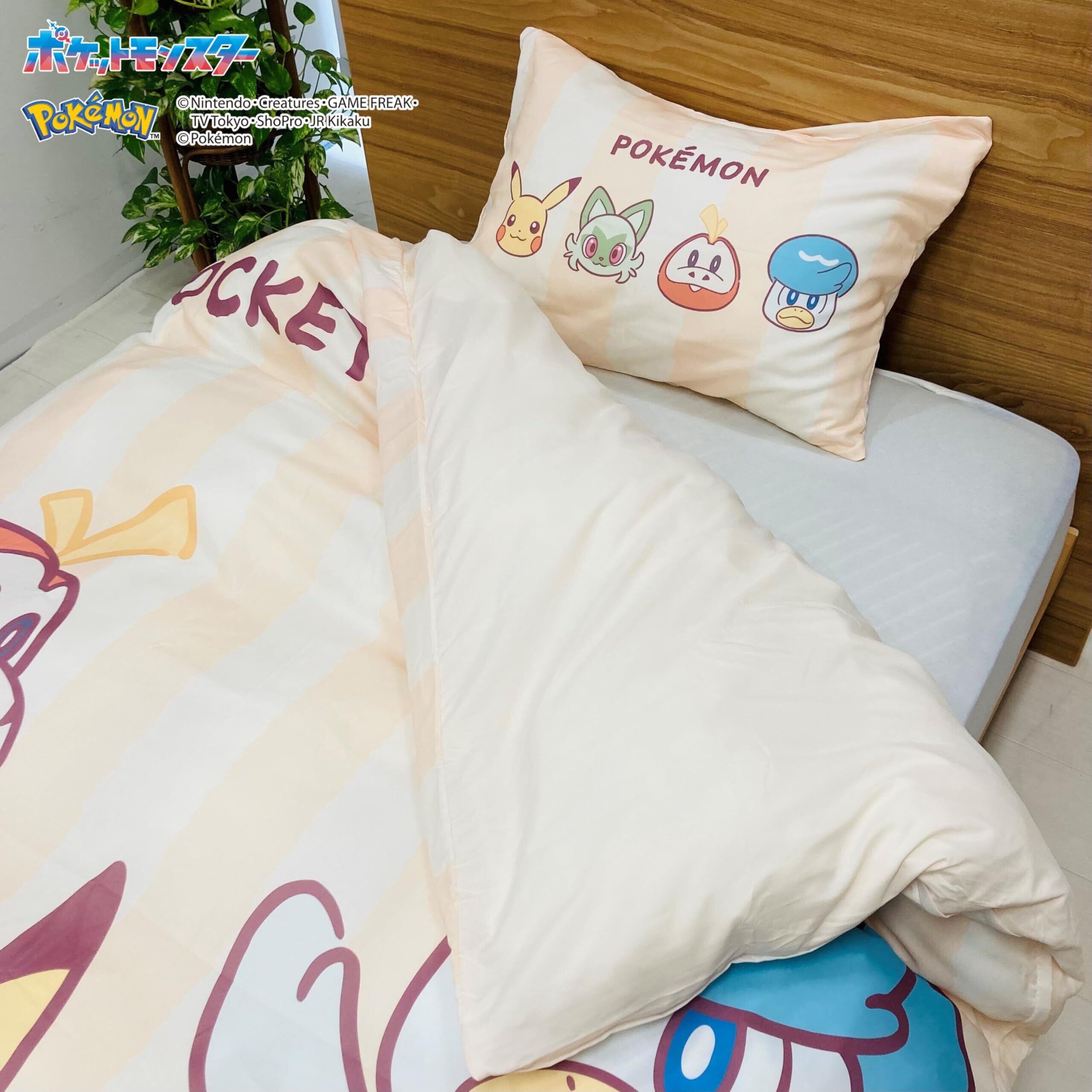 約43x63cm枕カバーと約150x210cmシングルロングサイズ掛布団カバーの2点セット ( ピカチュウ ニャオハ ホゲータ クワッス )