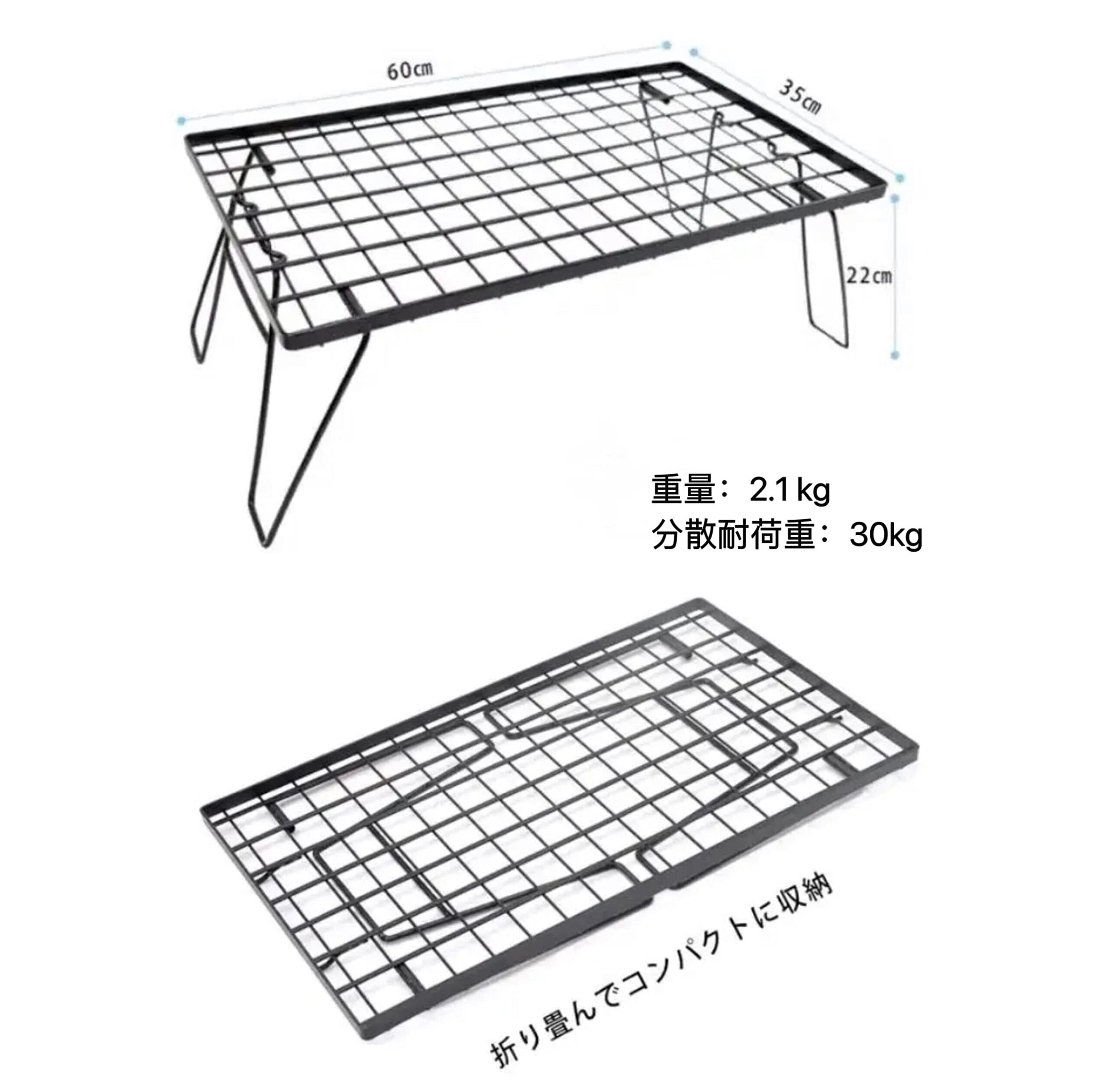 【商品仕様】 ●ラック材質:スチール黒メッキ収納袋材質:600Dポリエステル ●サイズ(使用時):約60×35×22cm(h) ●サイズ(収納時):約60×35×2.5cm ●重量:約2.32kg●内容:本体*3 収納袋付き