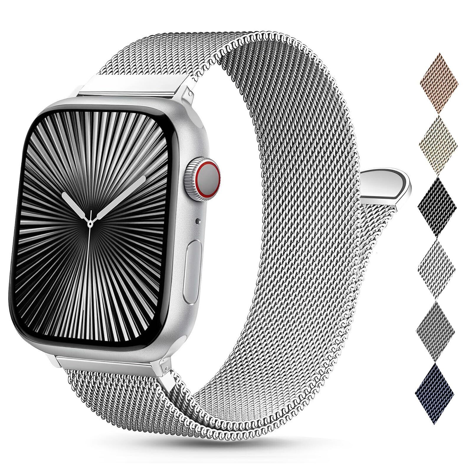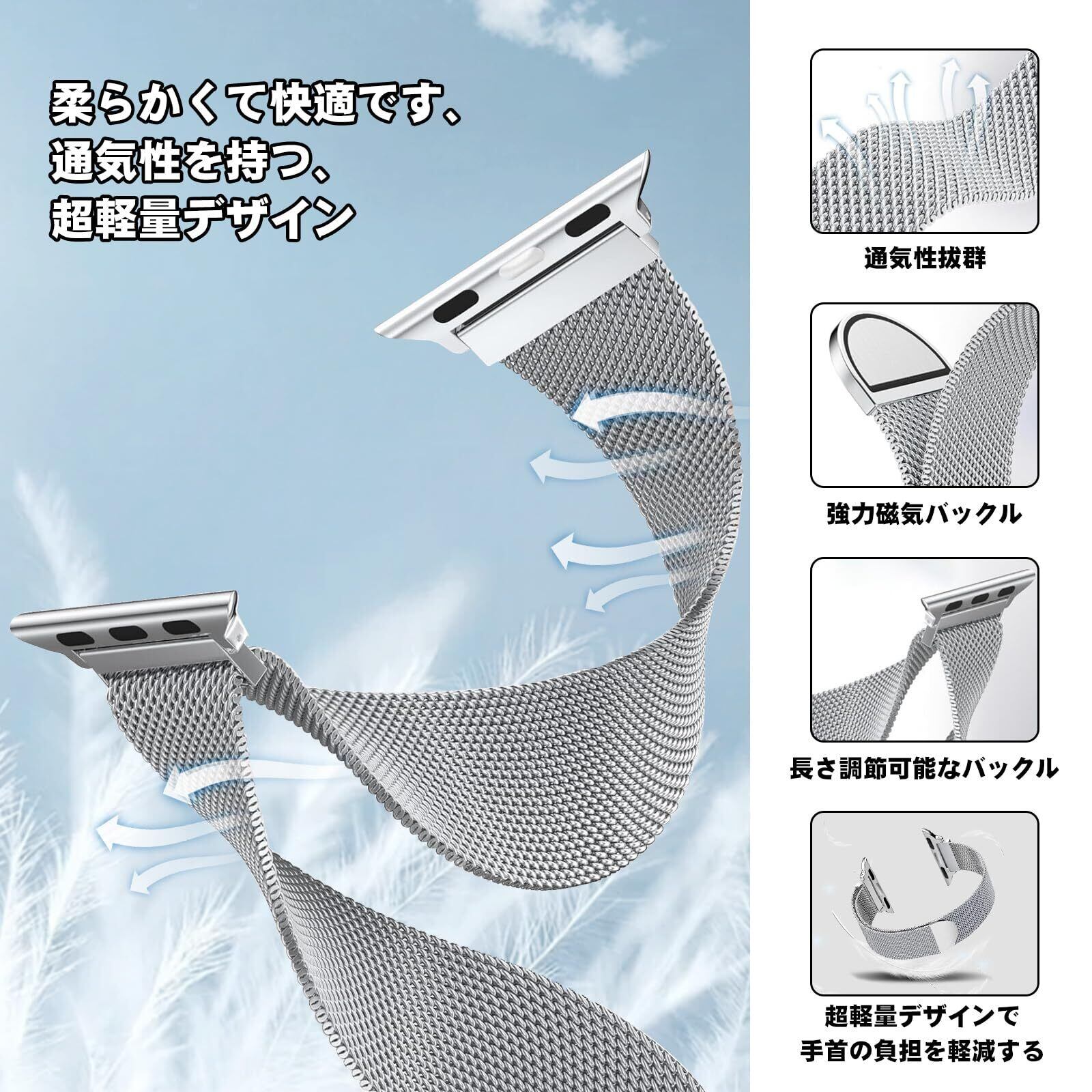 LISAMER アップルウォッチ用のバンド 49mm 46mm 45mm 44mm 42mm 41mm 40mm 38mm Apple Watchに適合する バンド ステンレス留め金製 男女兼用 マグネットクラスプ Watch ベルト 長さ調節 通気 メッシュ ベルト 対応 Watch Series 10/9/8/7/6/5/4/3/2/1SE/Ultra