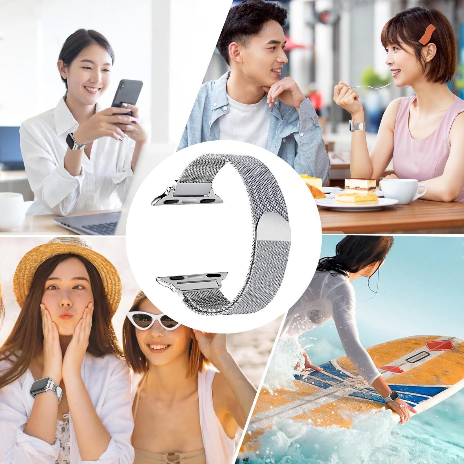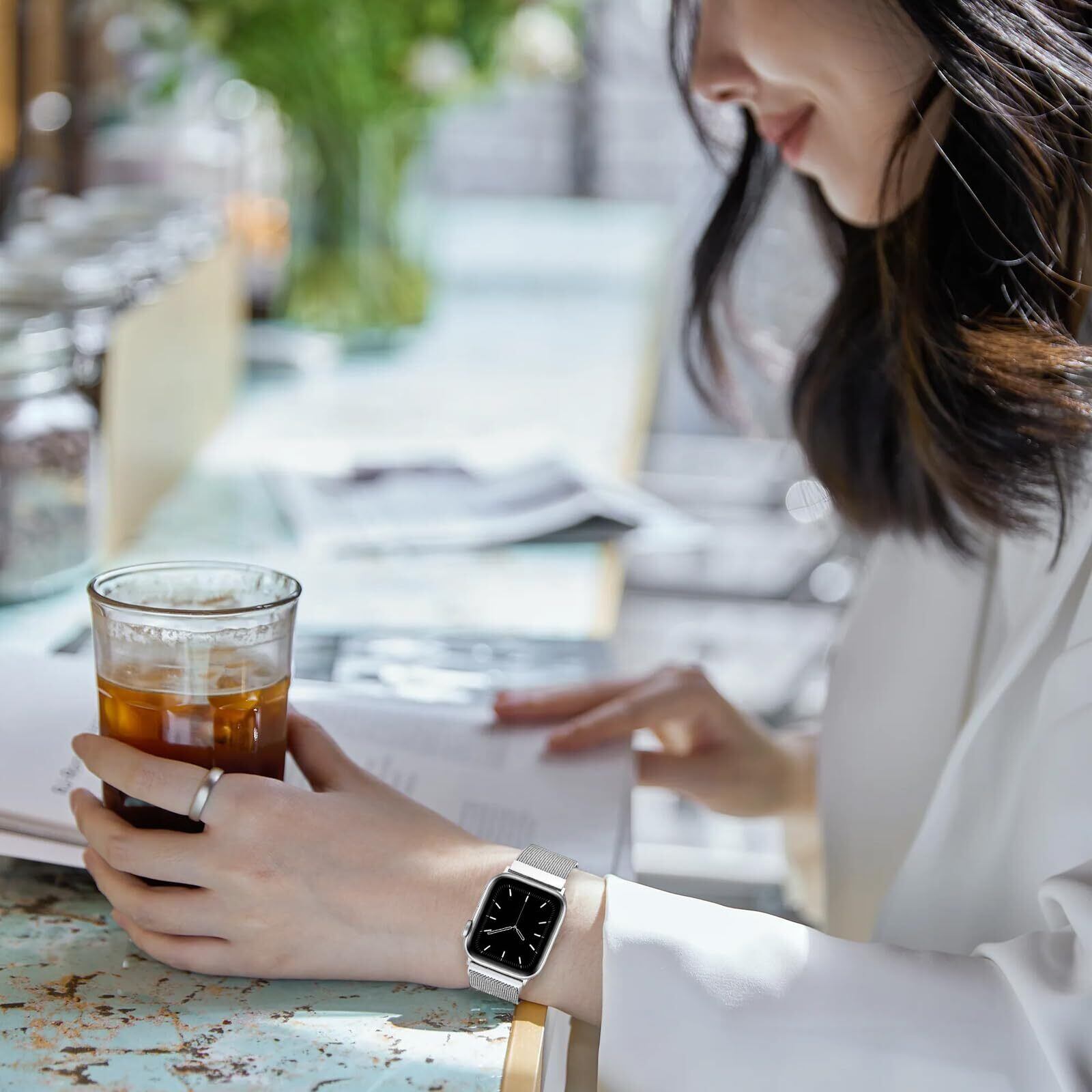 【優れた素材の通気性】対応 アップルウォッチバンドのデザインは通気性を考慮しており、メッシュ構造が手首周りの通気性を向上させ、汗をかく季節でも蒸れずに快適にご使用いただけます。独特のマグネットロックと研磨工芸で研磨されたエッジにより、日常の使用に強力な安定性とセキュリティを提供いたします。ご安心して使用できる Watch バンドです。