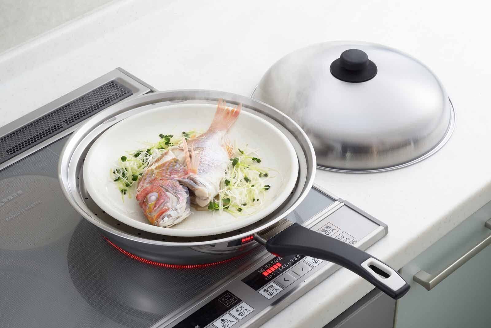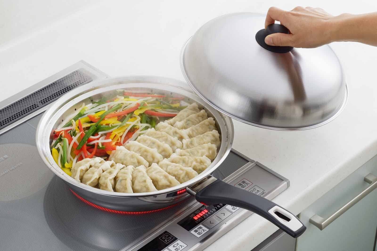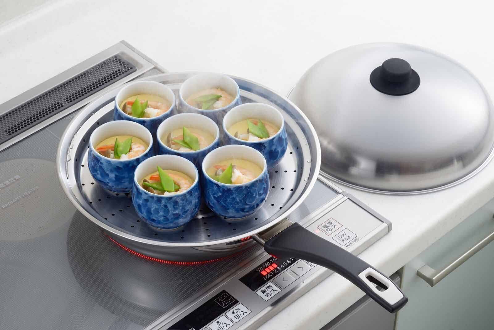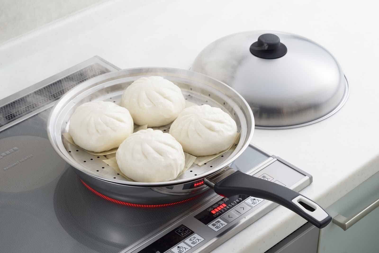 お手持ちのフライパンにのせるだけで蒸し器に早変わり!