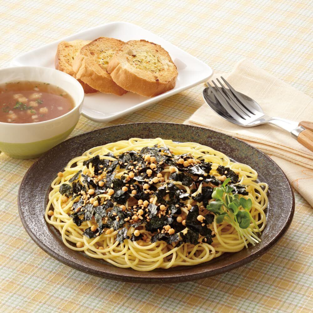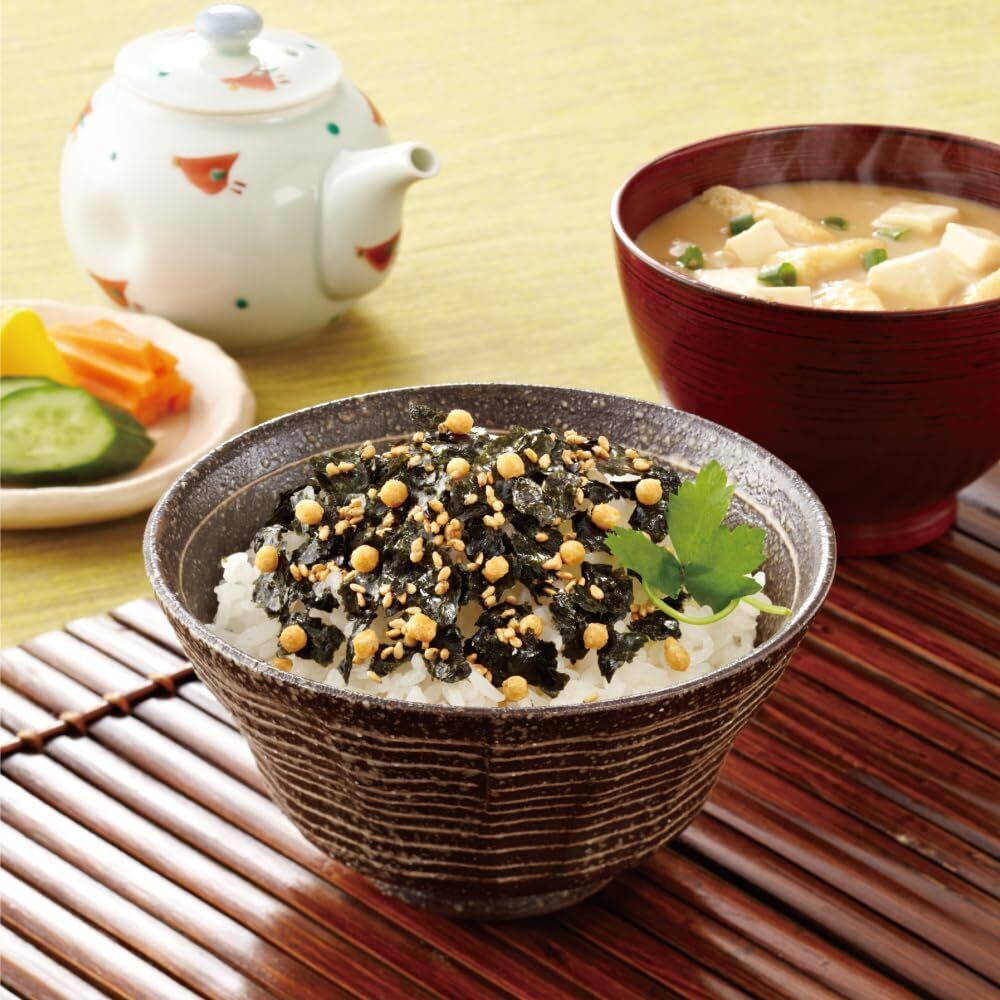いりごま(国内製造)、味付のり(乾のり、砂糖、しょう油、その他)、でん粉、あられ、砂糖、食塩、しょう油、デキストリン、酵母エキス、たん白加水分解物/調味料(アミノ酸等)、甘味料(ソルビトール、カンゾウ)、香辛料抽出物、着色料(カラメル)、(一部にえび・小麦・ごま・大豆を含む)