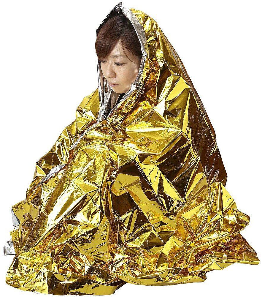 ●大判サイズなので体を包み込む事ができます。金色面を表にして急な冷え込み対策、銀色面を表にして日差しから体を守ります!