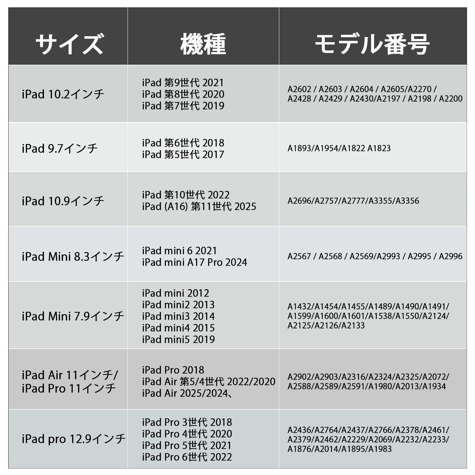【対応機種】iPad Air 11インチ(2025/2024)、iPad Air 第5/4世代(2022/2020)、iPad Pro 11インチ(2018年)専用です。モデル:A2902、A2903、A2316、A2324、A2325、A2072、A2588、A2589、A2591、A1980、A2013、A1934,他のiPadモデルと互換性がありません
