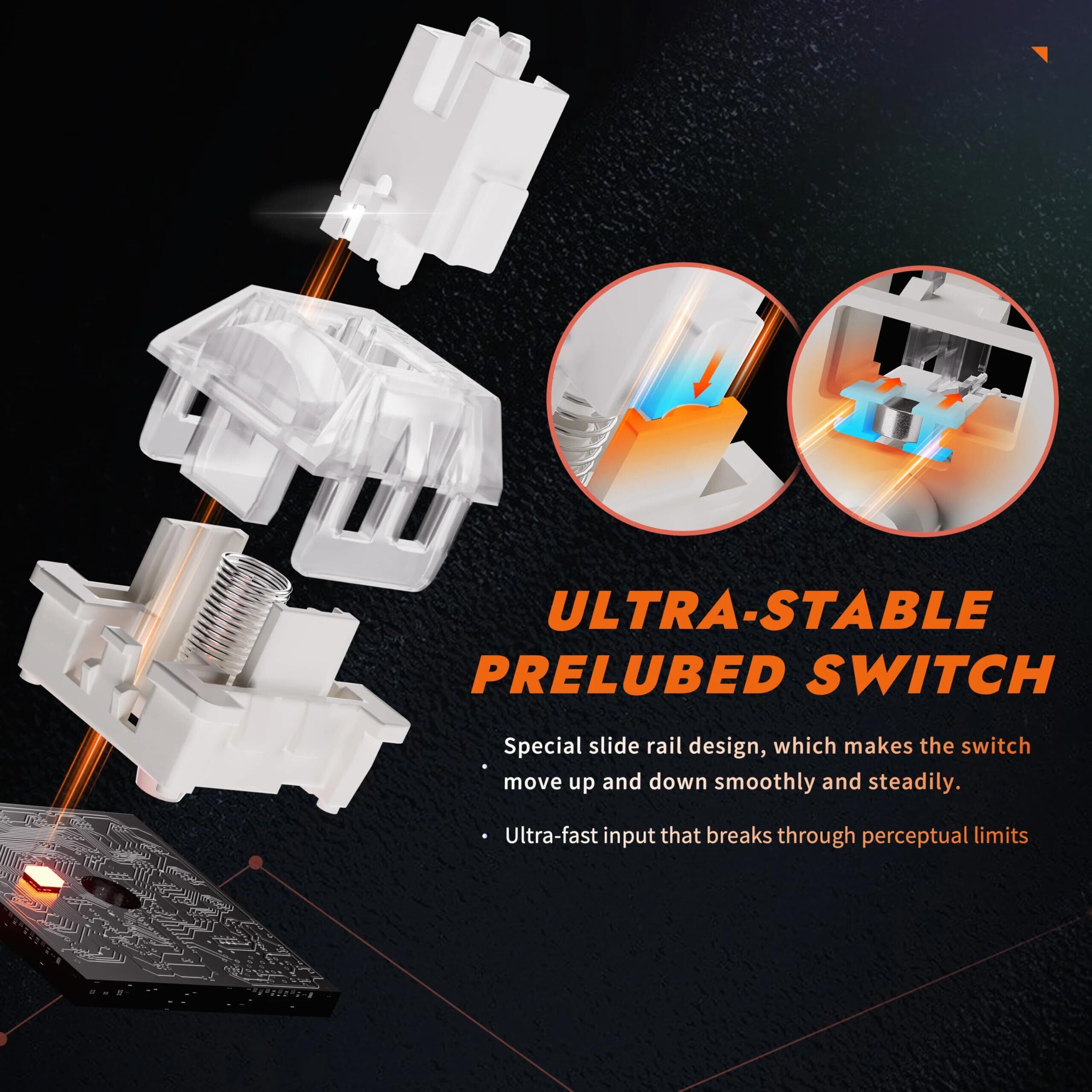 ラピッドトリガー:押すとトリガーされ、離すとリセットされます。感度範囲は0.1~3.6mm、精度は0.1mmです。キーアクションをスムーズに調整し、アクチュエーションポイントをロックすることなく中間動作のリピートを可能にします。プレイヤーは自分のニーズに合わせて自由にカスタマイズでき、Valorant、osu!などのFPSやリズムゲームで優位に立つことができます。