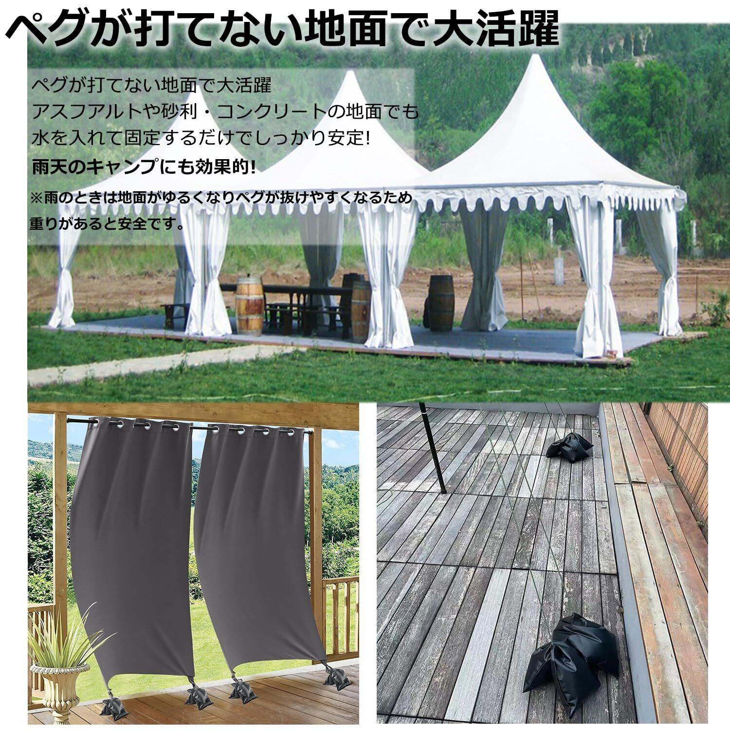 注水ウエイトに水を入れシェードの下部にヒモを付けてヒモ用通して固定したりと使い方がいろいろ可能です。