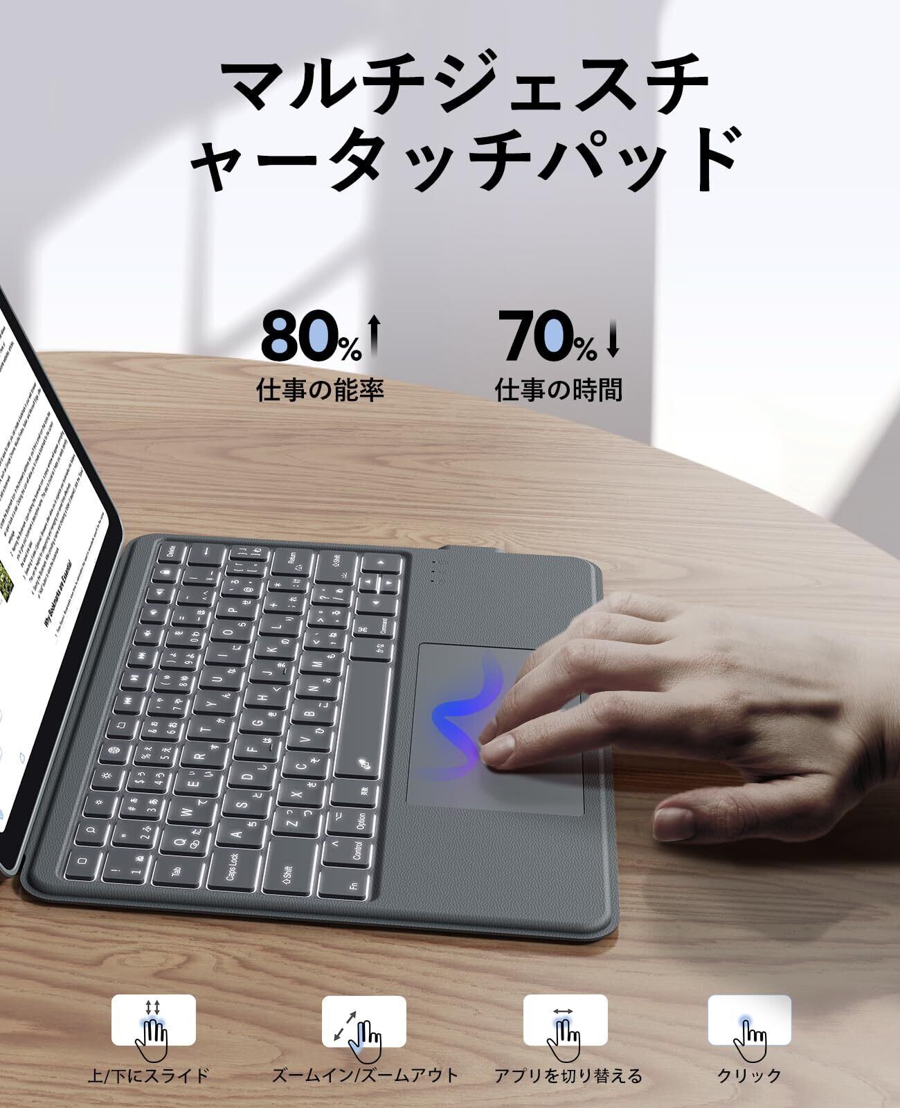 【オールインワンキーボード】操作性を向上させる設計になっています。正確なマルチジェスチャタッチパッドと完全なiOSキーボードショートカットにより、創造性をさらに高めることができます。ipad 10世代 ケース キーボードは付属のType-C充電器を使用して3~4時間の長い待機時間を楽しむことができ、好きな仕事を続けることができます。