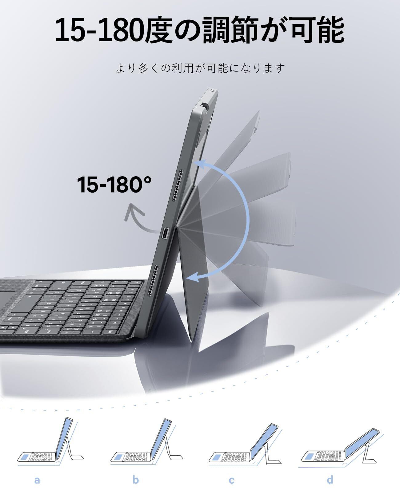 【調整自在スタンド】自由に調整可能な15°-180°のスタンド、正確な調整、快適に作業できます。 オフィスでもレジャーでも、様々なニーズに対応します。 オフィス、家庭、喫茶店で使用できます。