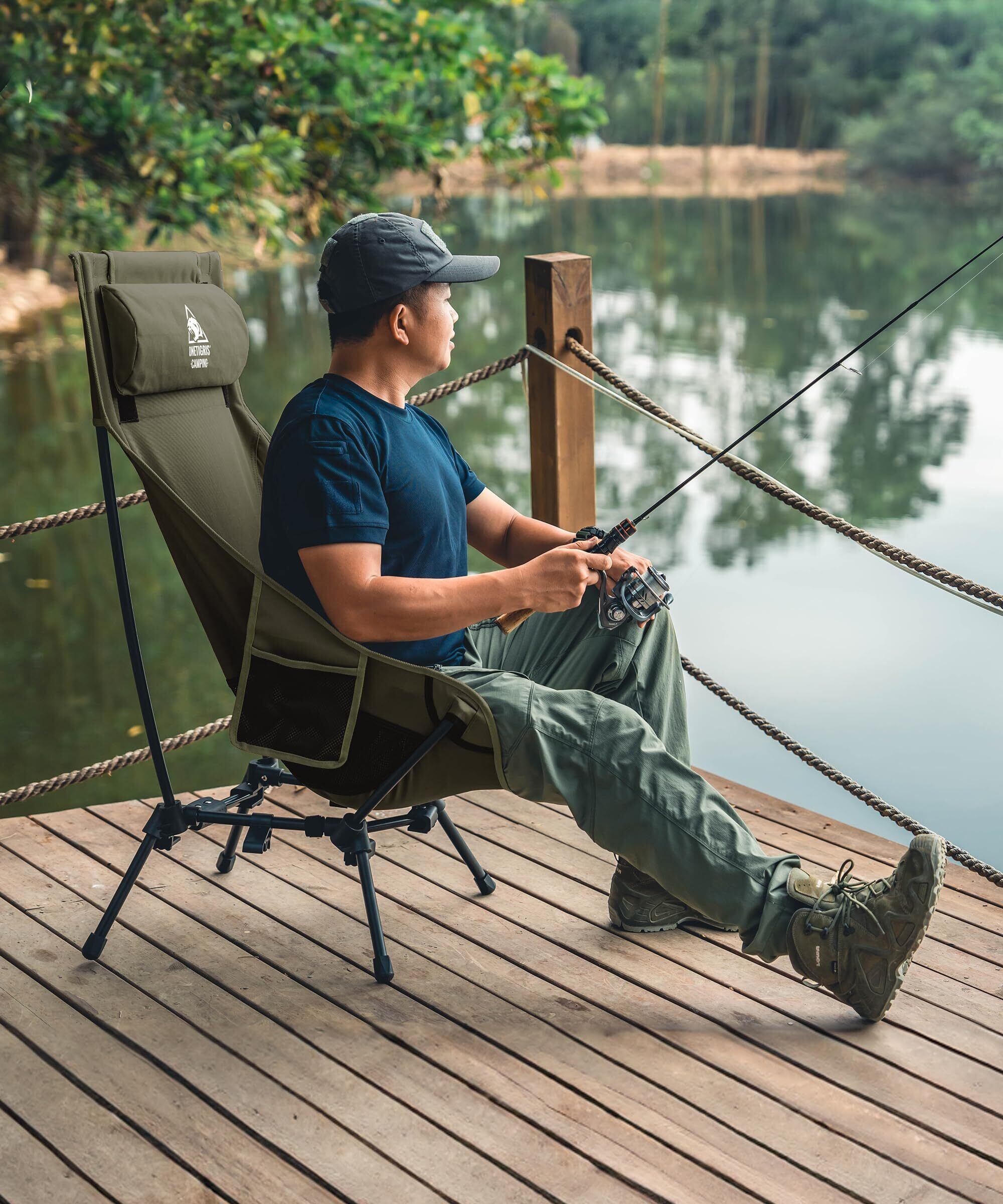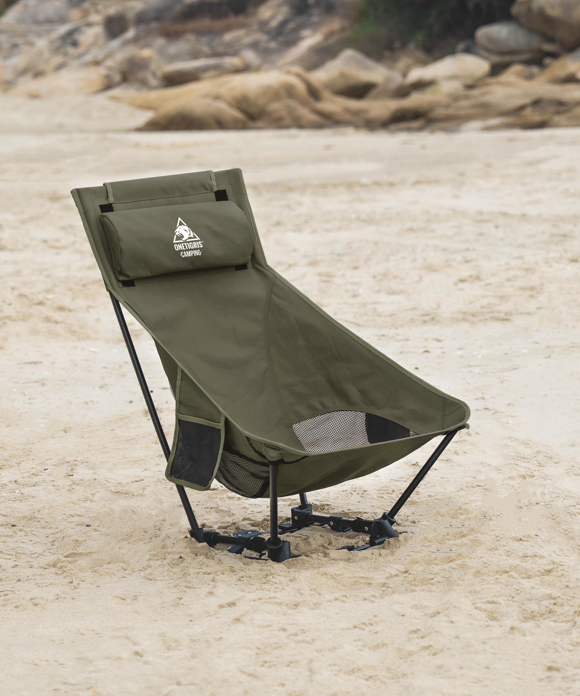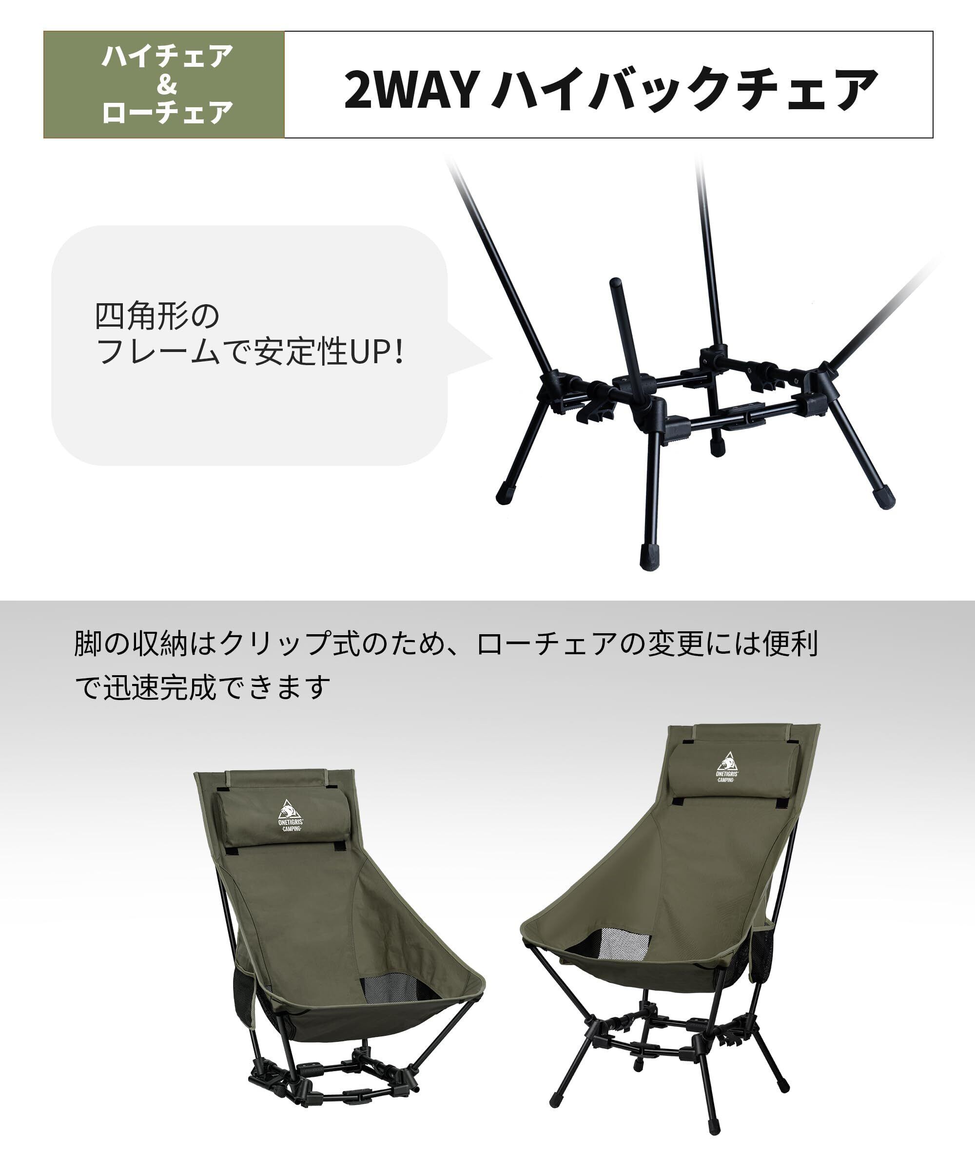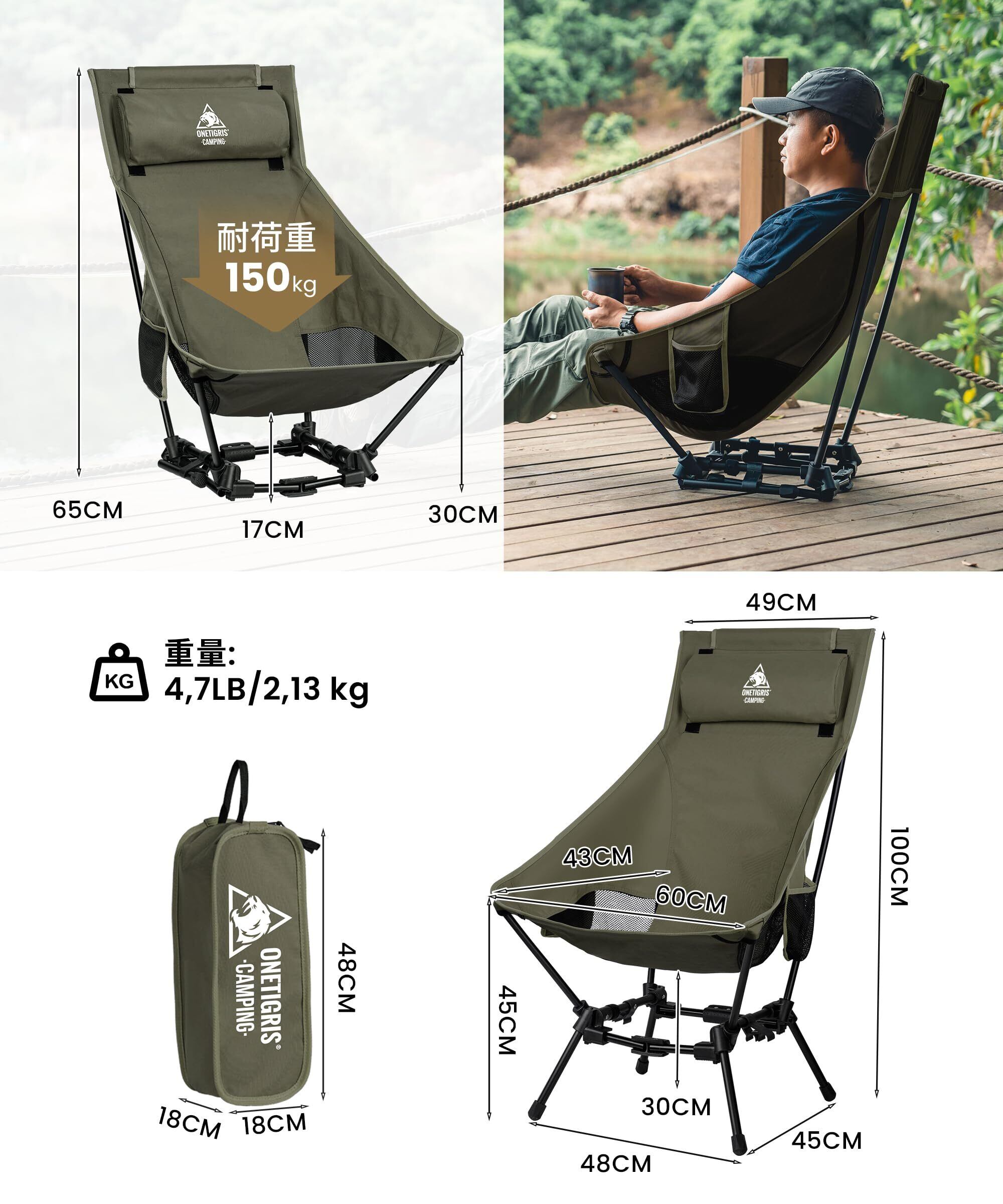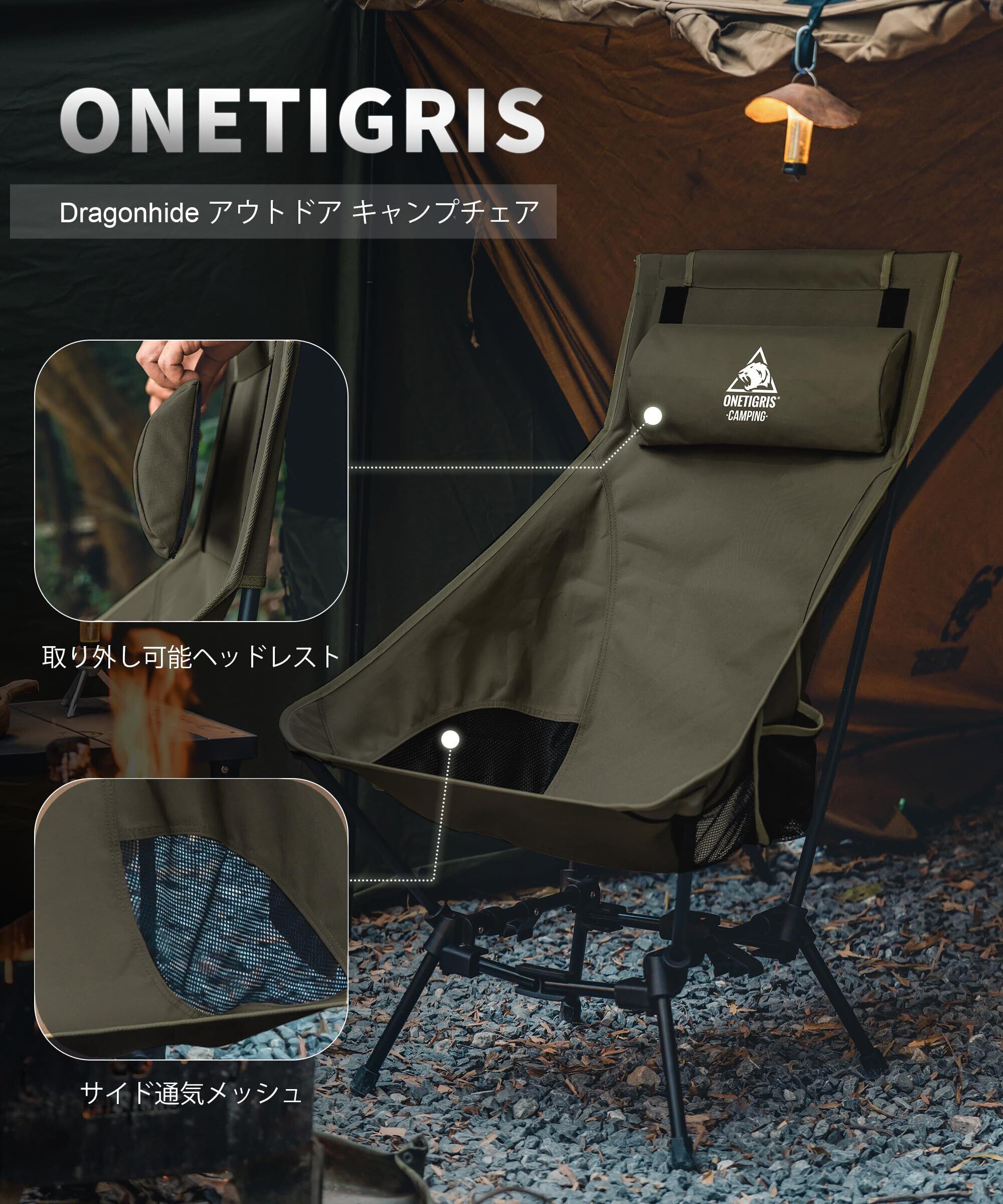 OneTigris Dragonhide アウトドアチェア ハイバックキャンプチェア 2WAY 折りたたみ式ローチェア 着脱式ヘッドレスト付き 耐荷重150kg 安定性アップ 登山 アウトドア用品