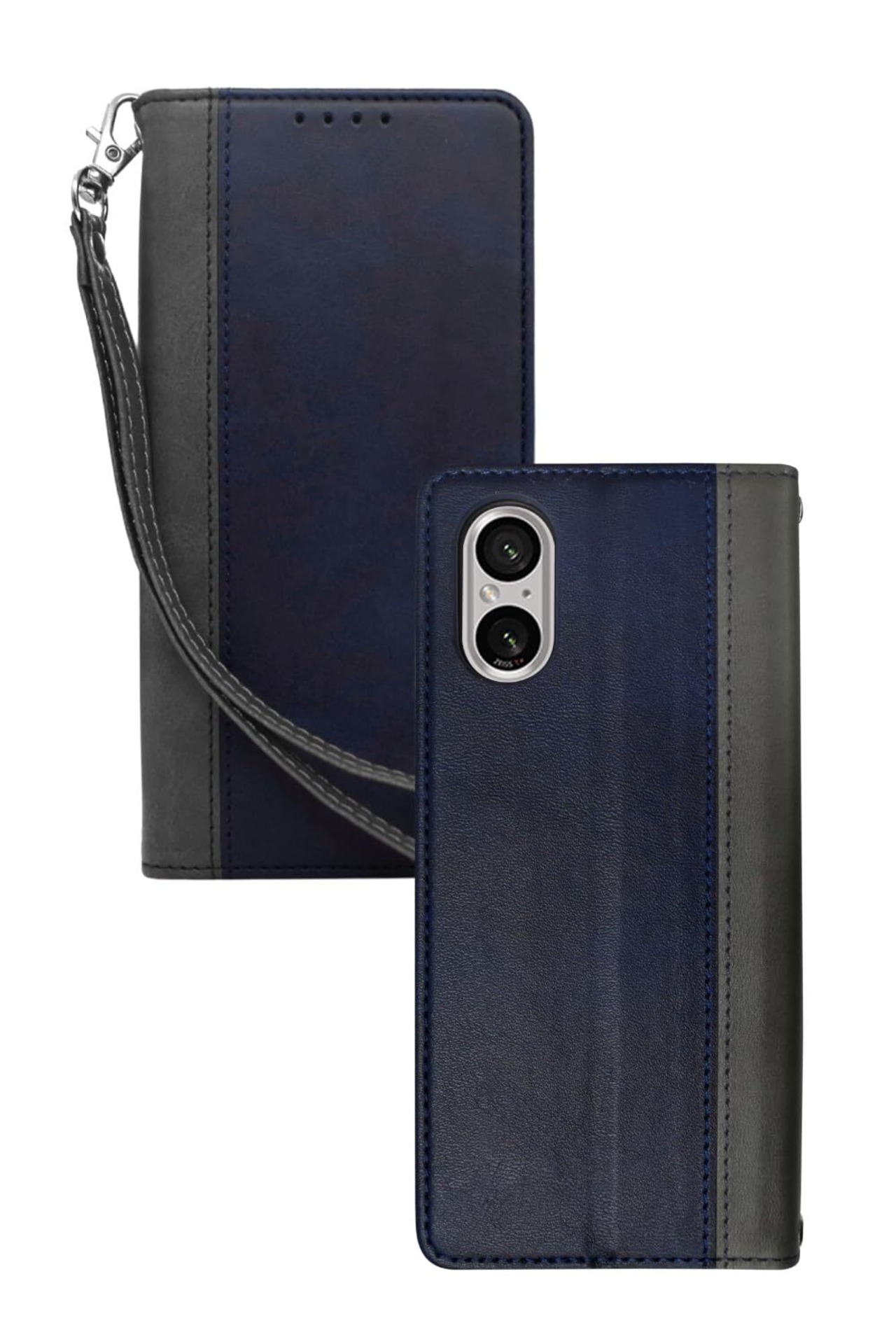 叶kanae カナエ Xperia 5 v SO-53D SOG12 XQ-DE44 ケース カバー 手帳型 本革調 レザーケース ネイビー×グレー 1個入り