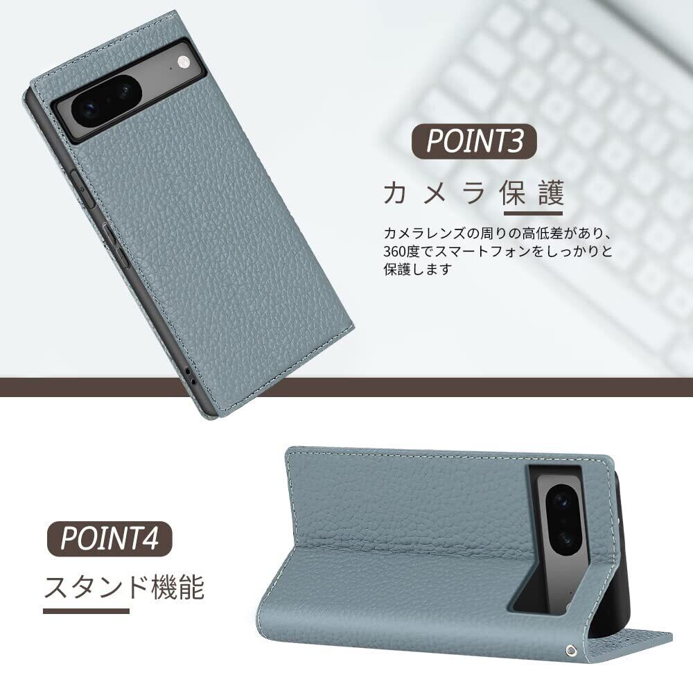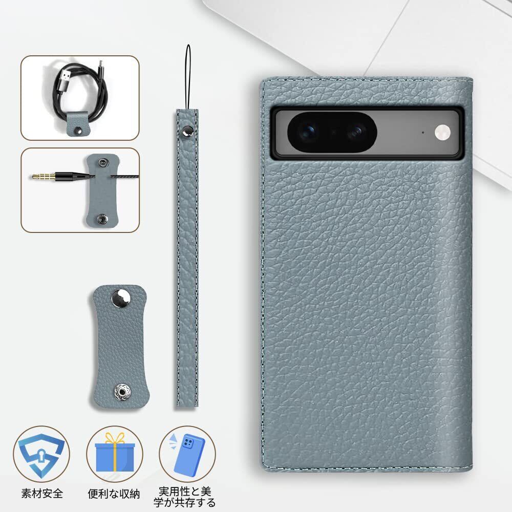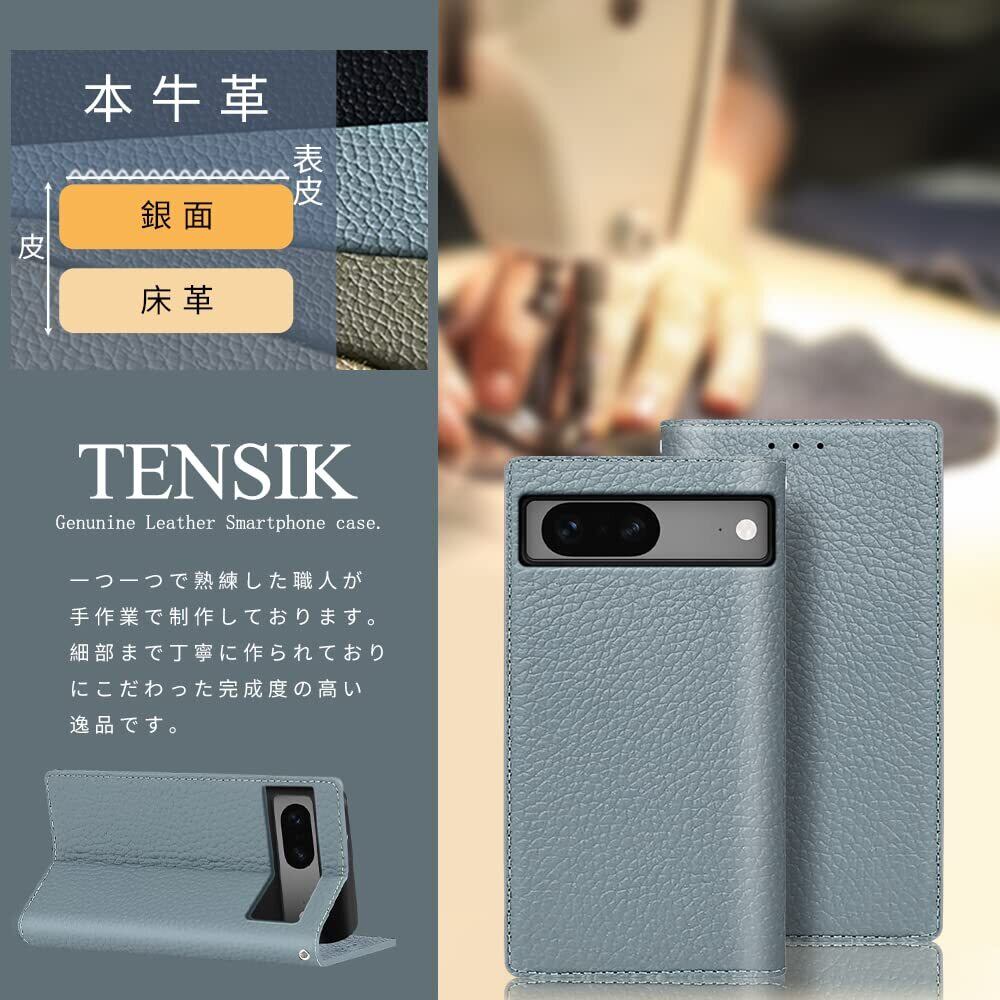 TENSIK GooGle Pixel 7 ケース 手帳型 グーグル ピクセル7 ケース 高級牛本革 ぐーぐる ぴくせる7 スマホケース マグネット式 携帯カバー 財布型レザー 手帳型カバー本革 スタンド機能 ストラップ付き カードポケッ トギフトボックス付き ブルー×ブルー