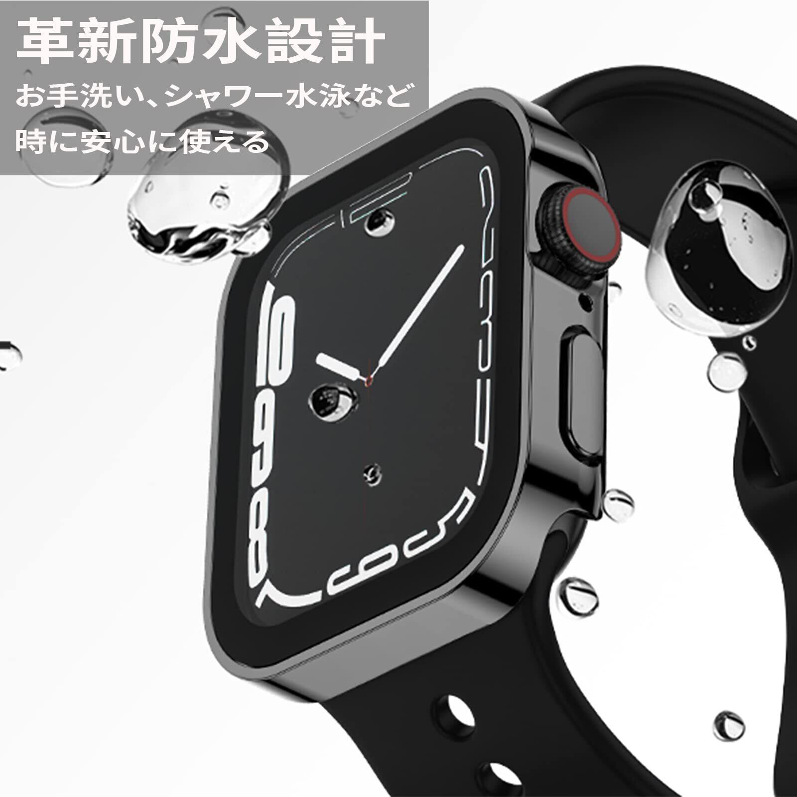AMAPC for Apple Watch ケース Apple Watch ケース 対応 IP68完全防水 バンド 水泳・スポーツ専用 防水ケース 3D直角エッジデザイン Apple Watch Series 9/8/7 45mm対応 光沢のブラック&シルバー