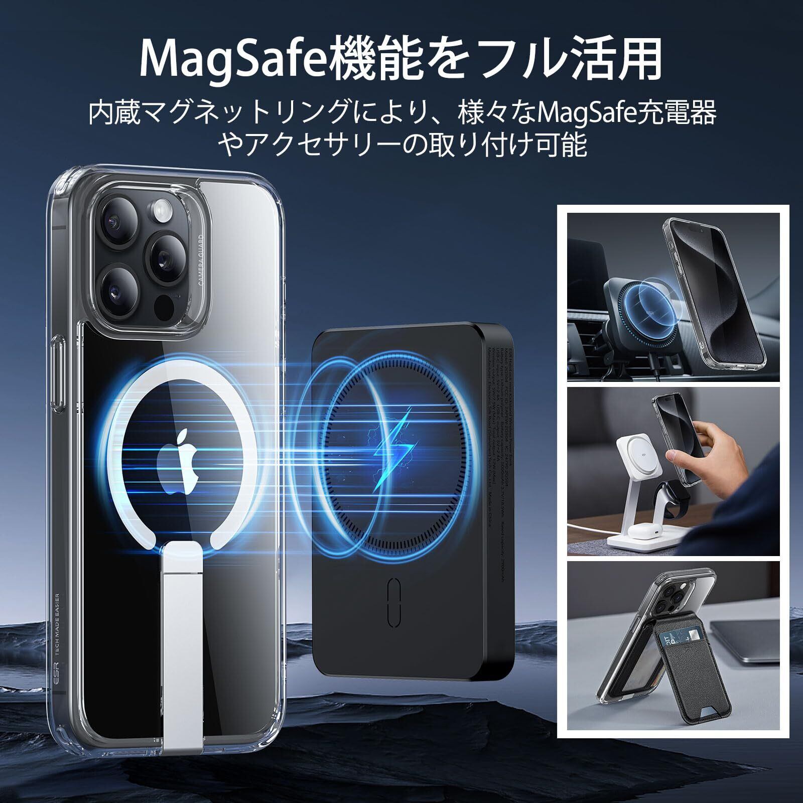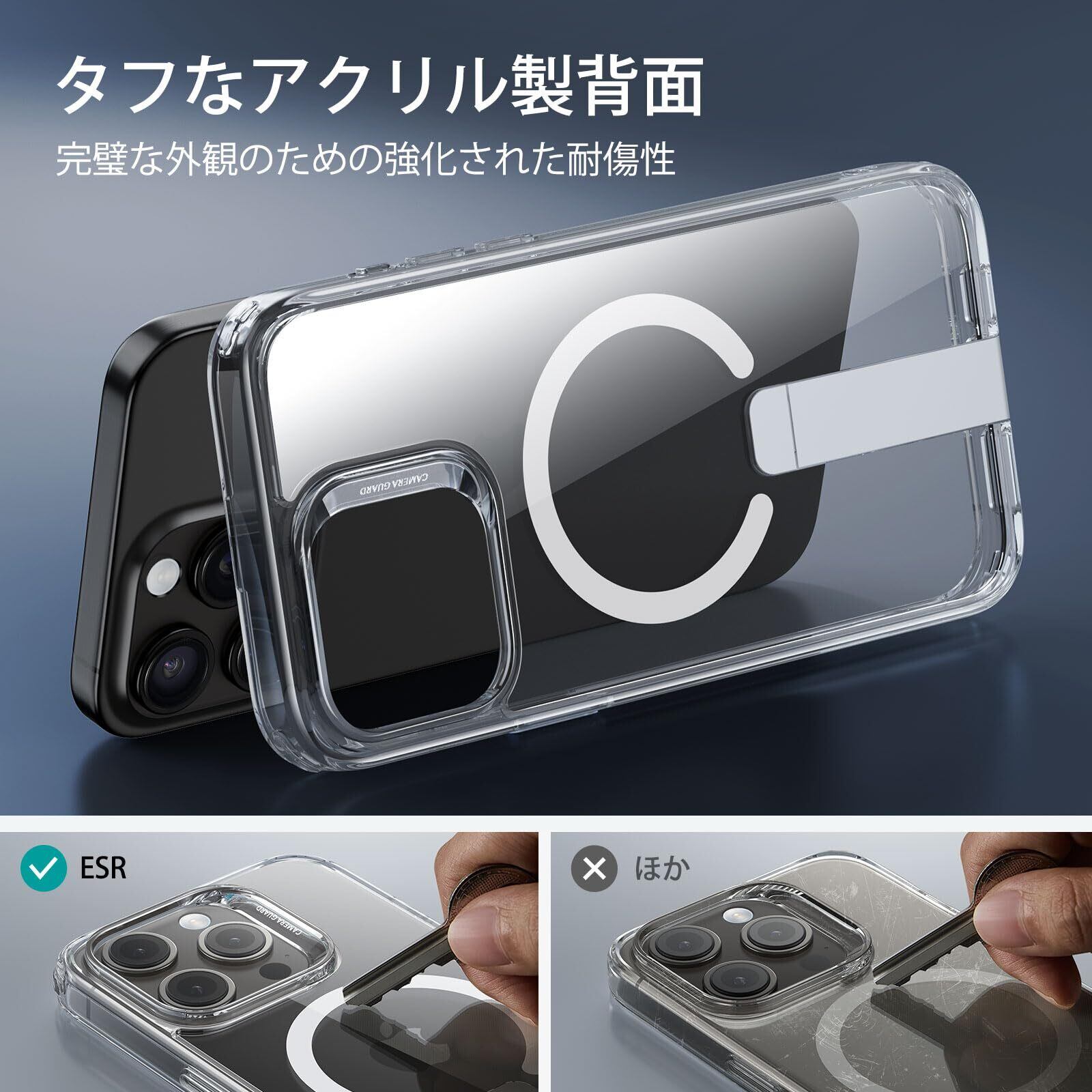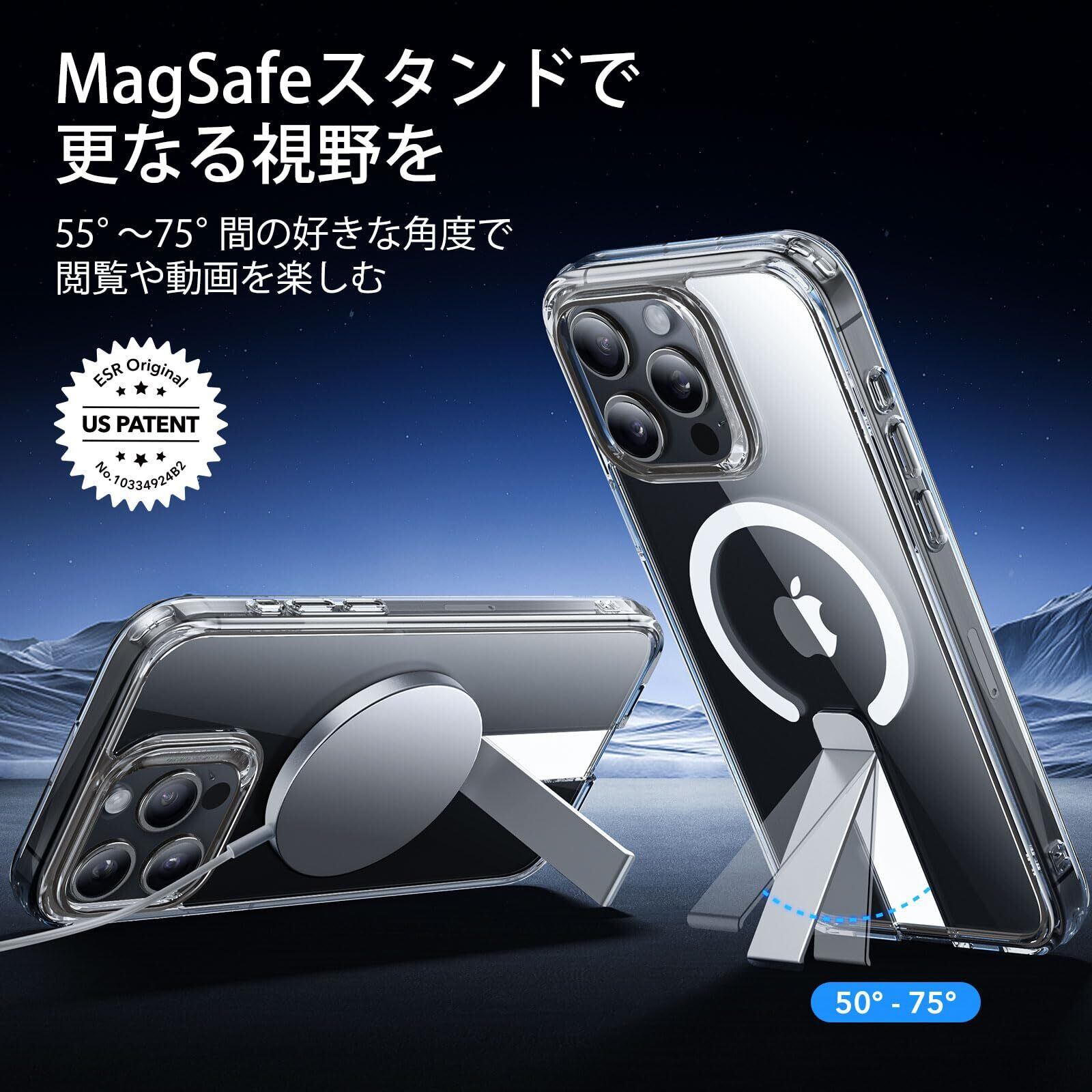 ESR iPhone 15 Pro Max ケース MagSafe対応 自在に調節可能なフリックスタンド 軍用規格落下保護 MagSafeスマホケース 特許取得キック スタンド付きスリム背面カバー Boostシリーズ いphone15promax ケース 6.7インチ 黄変なし クリア