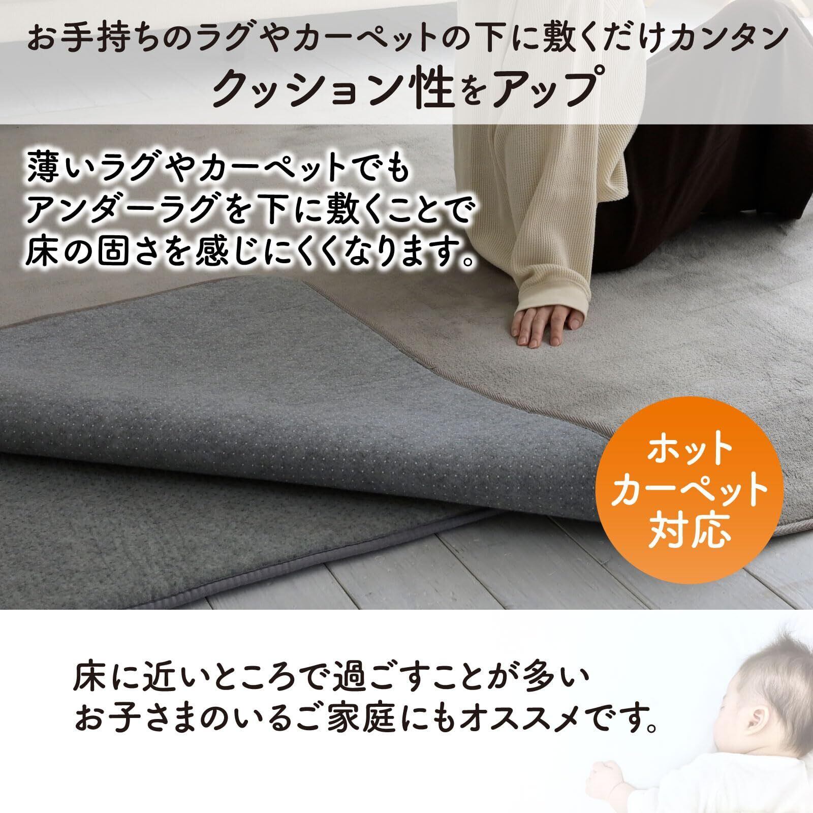 【クッション性アップ】お使いのラグやカーペットの下に敷くだけでズレ防止になり、ボリューム感もアップさせられる下敷き用のラグです。