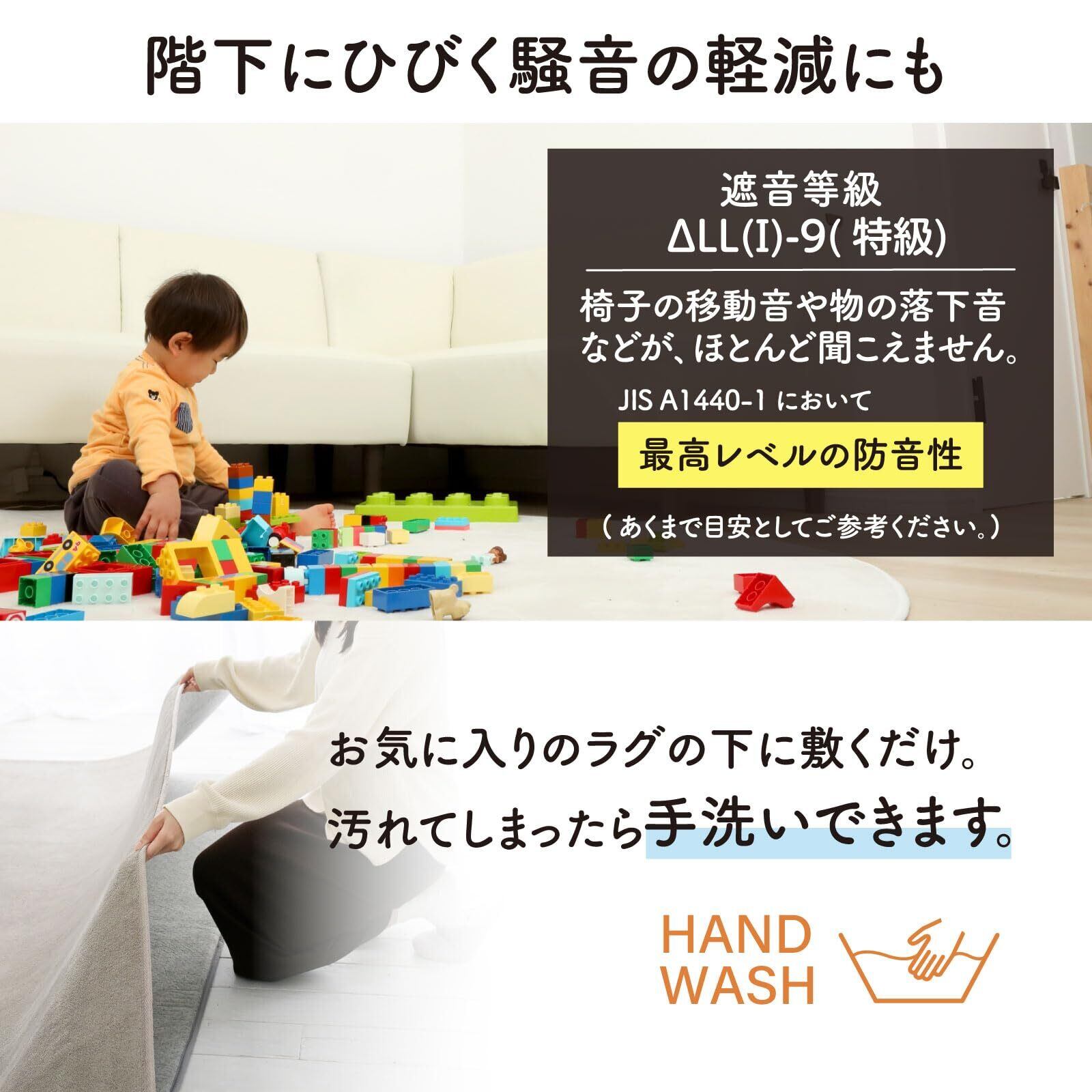●本体サイズ(約) : 115×170cm●厚み : 20mm●材質 : 不織布 ポリエステル 100%●充填物 : ウレタンフォーム●第三者機関での床衝撃音レベル軽減性能試験においてΔLL(I)-9(特級)を記録(JIS基準準用)●東証プライム(株)山善で扱うすべての山善商品は、自社もしくは第三者機関において、JIS規格に基づいた品質試験を行っております。
