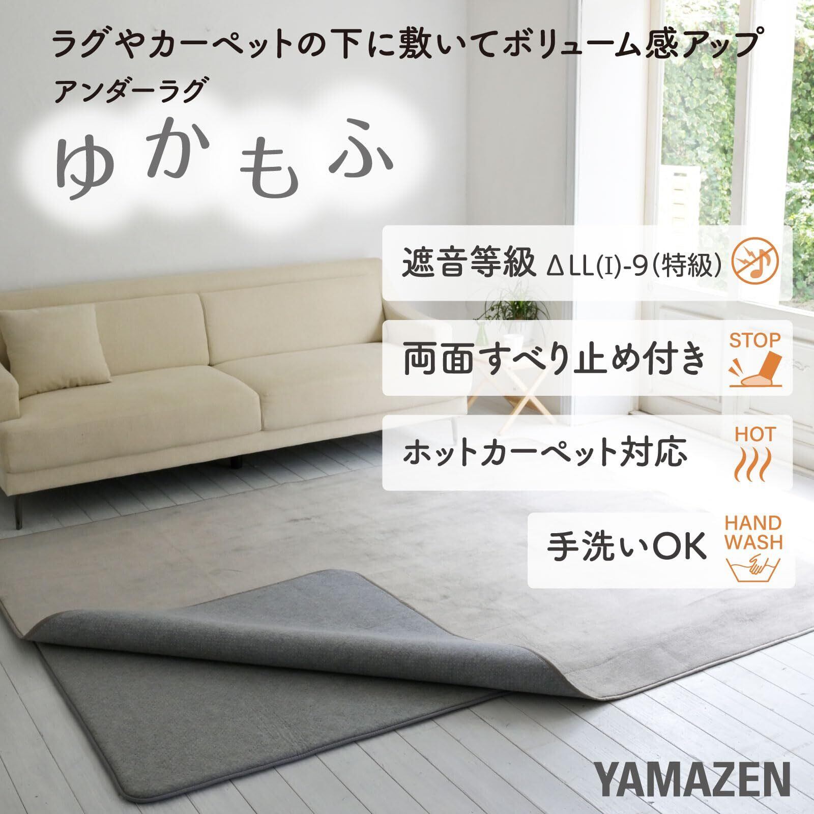 山善(YAMAZEN) ラグ カーペット アンダーラグ ゆかもふ 20mm厚 1.5畳 115×170cm 滑り止め 防音 洗える 防音等級ΔLL(I)-9(特級) ホットカーペット対応 赤ちゃん ベビー SYM20-1.5