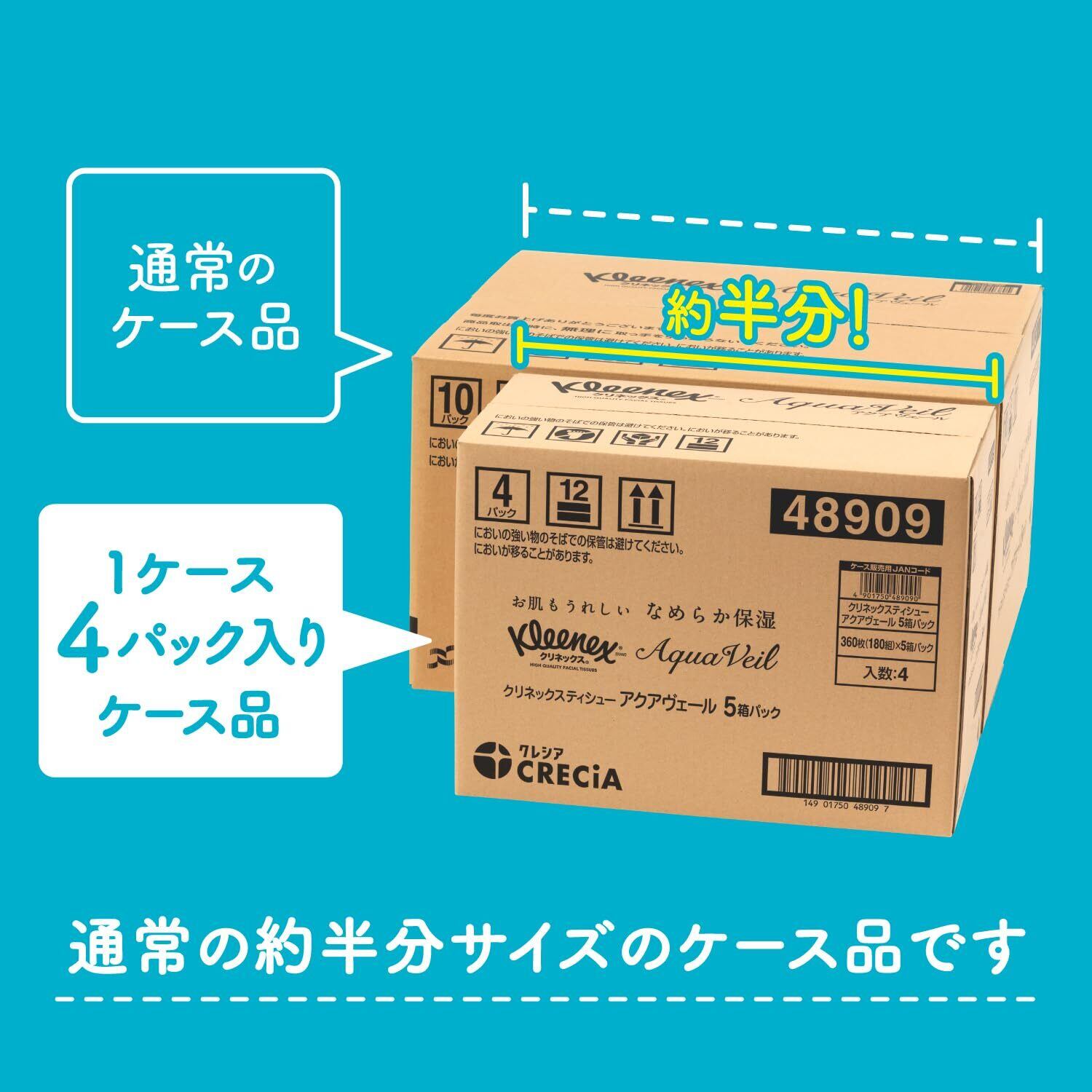 クリネックス 【ハーフケース品】 ティシュー アクアヴェール 360枚(180組) 5箱 ×4パック入り