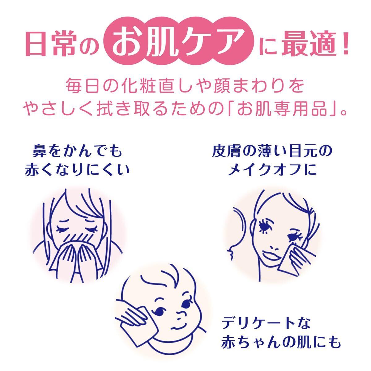 保湿成分配合のティシュー。うるおい成分(グリセリン)が繊維内部に水分を取り込みキープする為、表面はつるつる、内側からしなやかな紙になり、ティシューをお肌にあてたときの摩擦が普通のティシューに比べて少なくなります。