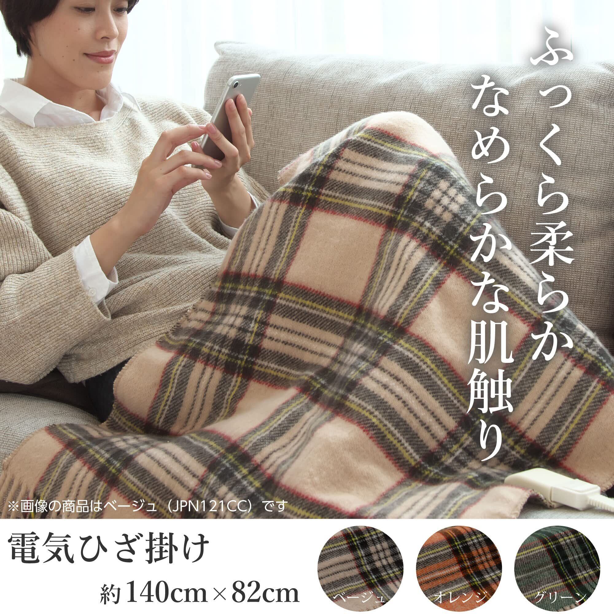 ライフジョイ 電気ひざ掛け ベージュ チェック柄 140cm×82cm 電気毛布 洗える ブランケット ふわふわ あったか JPN141CC