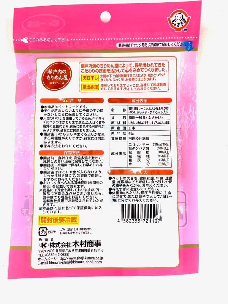 木村海産 猫用おやつ 減塩じゃことおさかなふりかけ いわしぶし入り まぐろぶし入り 45g 24袋入り (ケース販売)