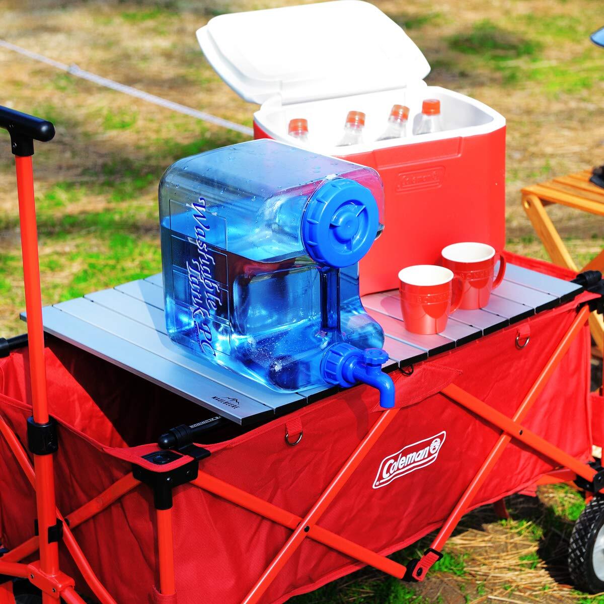 高所への設置が必要なウォータージャグ置き場 / 料理や食器を並べるテーブルとして / テーブルの下は直射日光や地熱が少なくなるのでクーラーボックスの氷が解けにくく保管に最適! / 女性でもラクラク持ち運べる超軽量設計