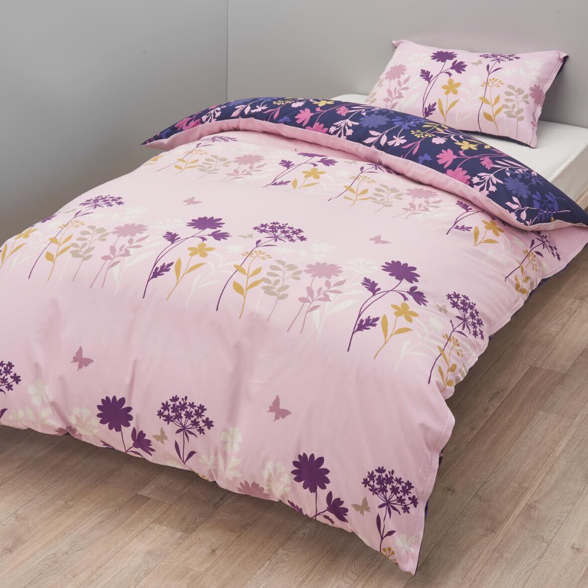 nishikawa【西川】 mee 掛け布団カバー シングル 洗える 肌触りの良いなめらかな綿100% パチッと止めるだけのスナップ式ホック 8ヵ所 スッと通せる両サイド全開ファスナー 吸水性がよく 抗菌加工でいつでも清潔 日本製 ライトピンクME25 花柄 218775138