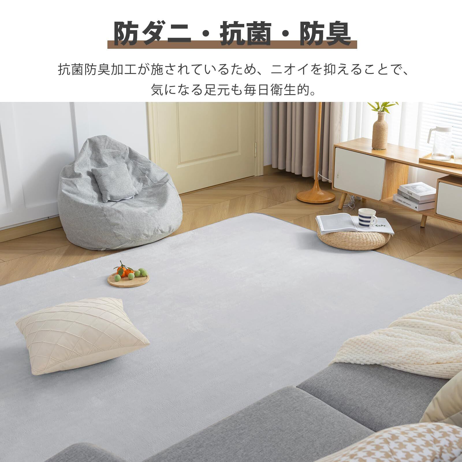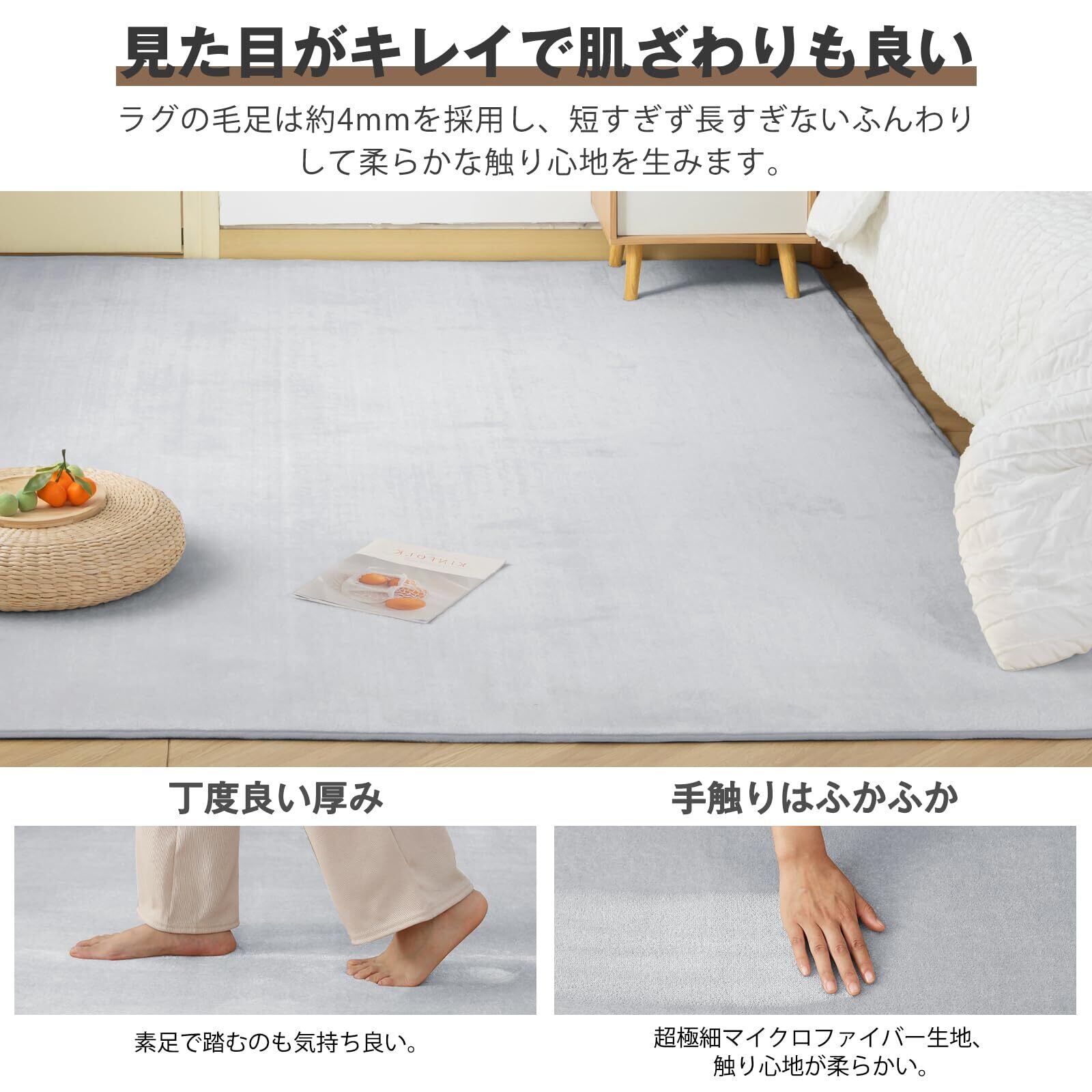 fuwawa ラグ カーペット 滑り止め付 洗える ラグマット 2畳 185×185cm 絨毯 オールシーズン快適に使用 フランネルラグ 抗菌 防臭 ホットカーペット対応 無地 ライトグレー