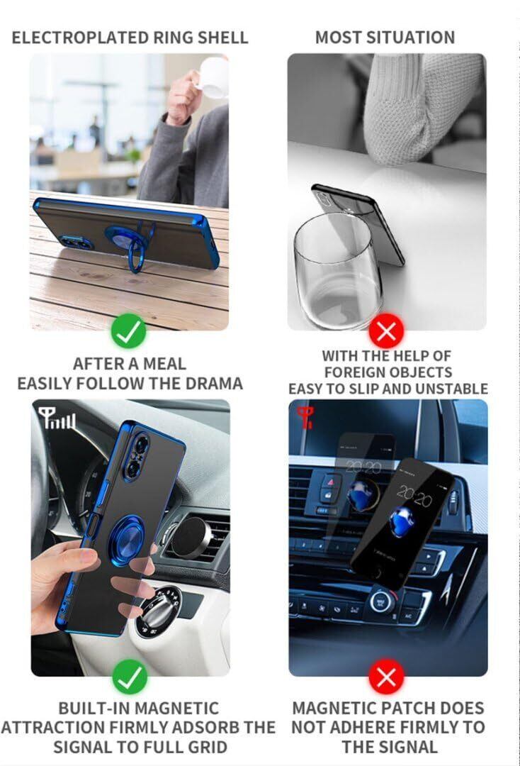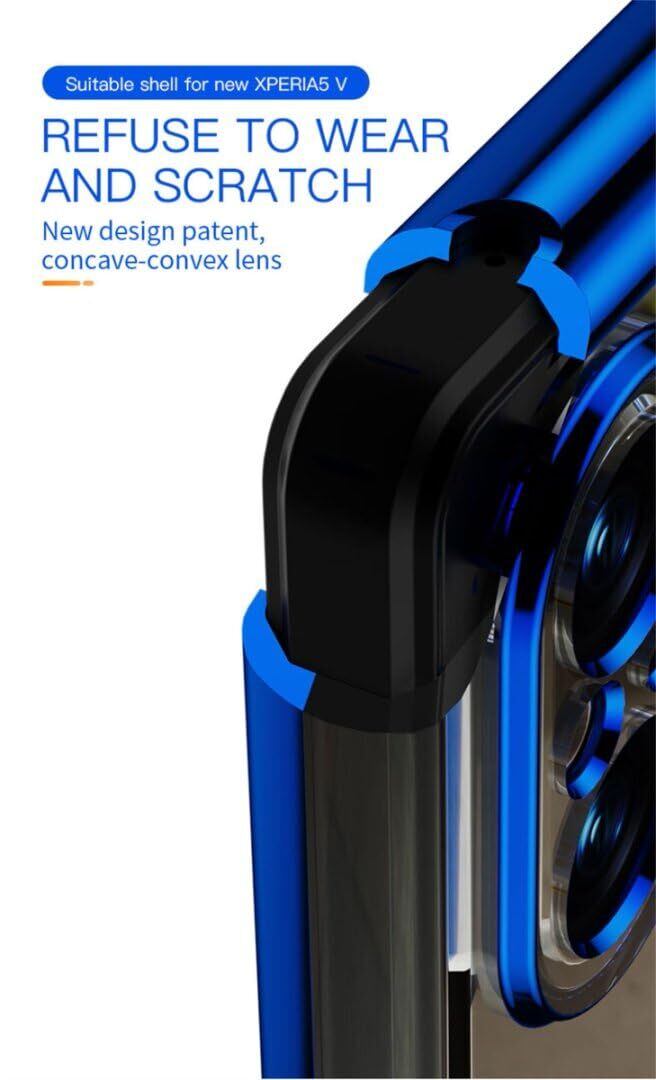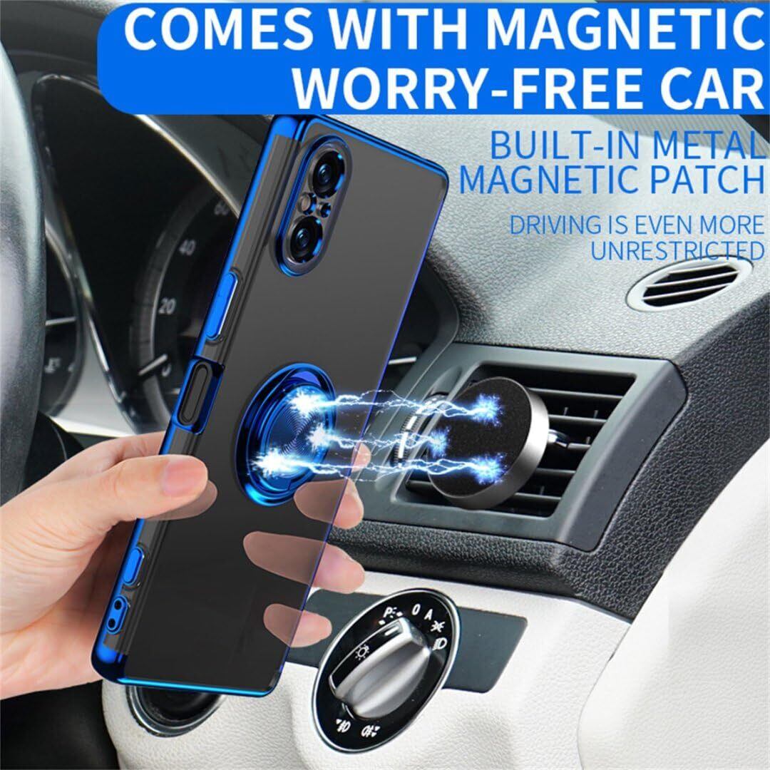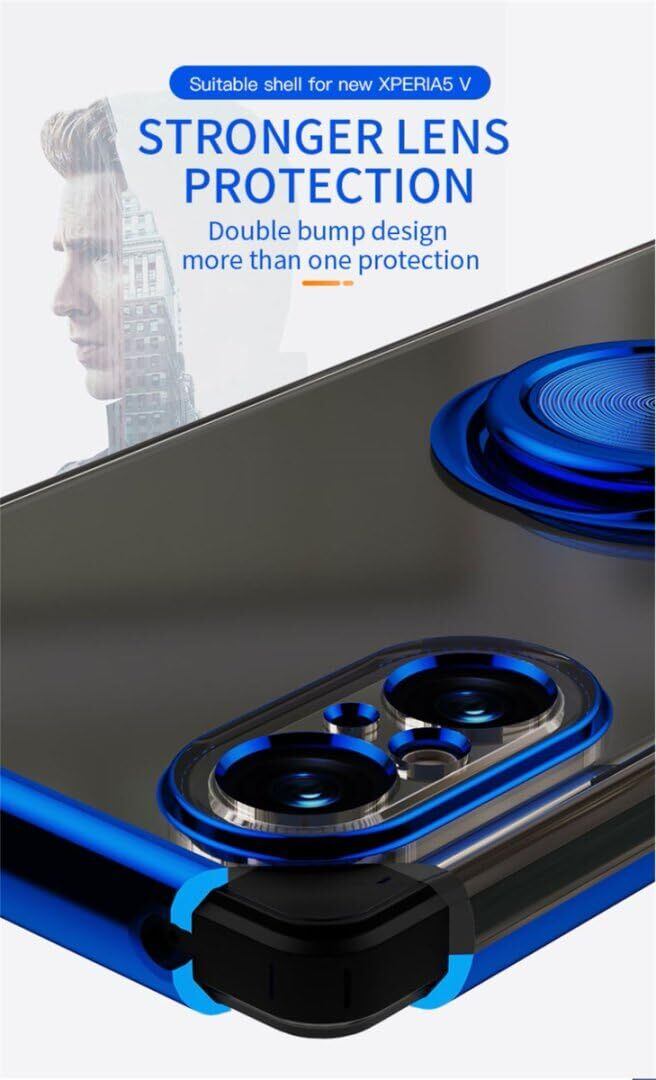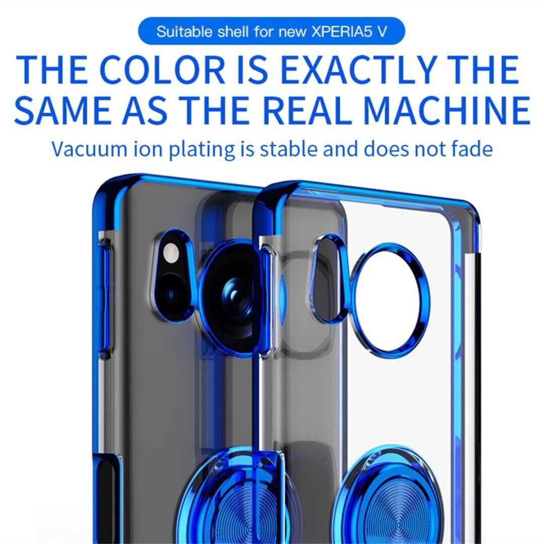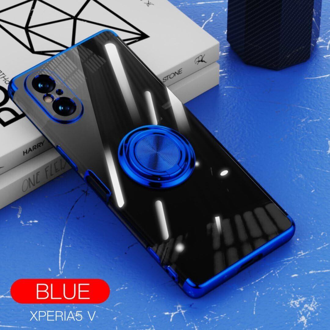Xperia 5 Ⅴ ケース クリア リング付 SO-53D SOG12 耐衝撃 Xperia5iv カバー リング 透明 スリム TPU 薄型 メッキ加工 ソフト シリコン スタンド機能付 360回転 車載ホルダー対応 ブルー