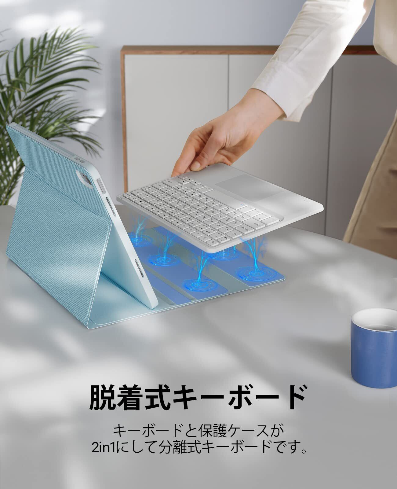 Earto for iPad 第10世代 キーボード ipad 2022モデル 10.9インチ タッチパッド付き JIS基準日本語配列 2台デバイスマルチペアリング ipad 10世代 キーボード 脱着式 多角度調整 ペンシルホルダー付き スマート軽量 薄型 type-c充電式 マグネット付き A2696/A2757/A2777対応 ブルー