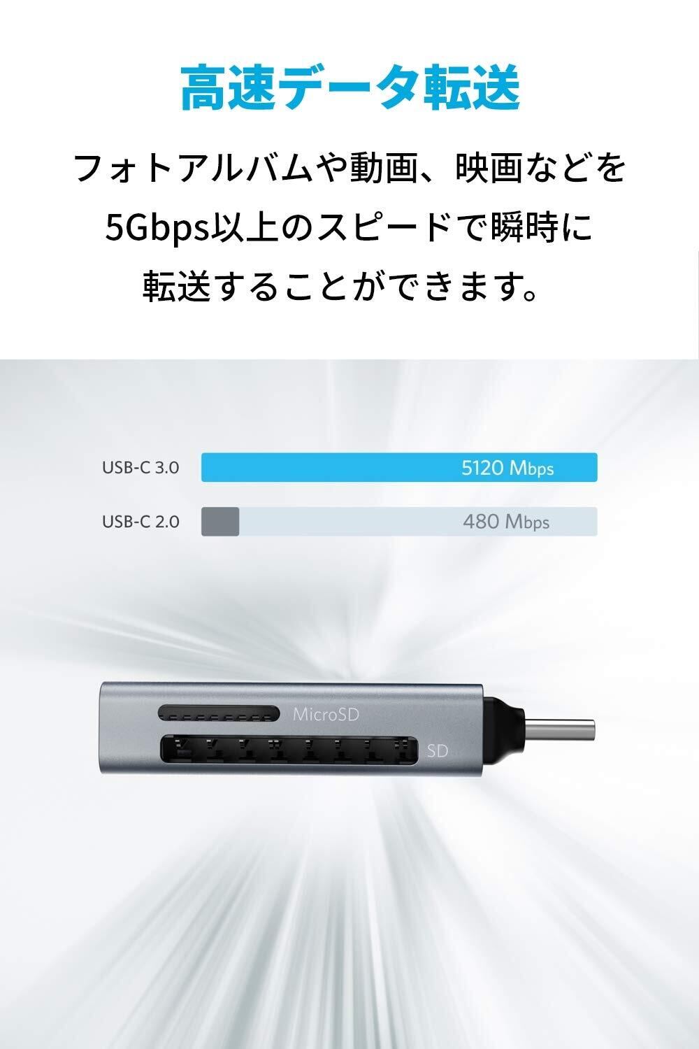 Anker USB-C 2-in-1 カードリーダー【SDXC/SDHC/SD/MMC/RS-MMC/microSDXC/microSDHC/microSD/UHS-Iカード対応】