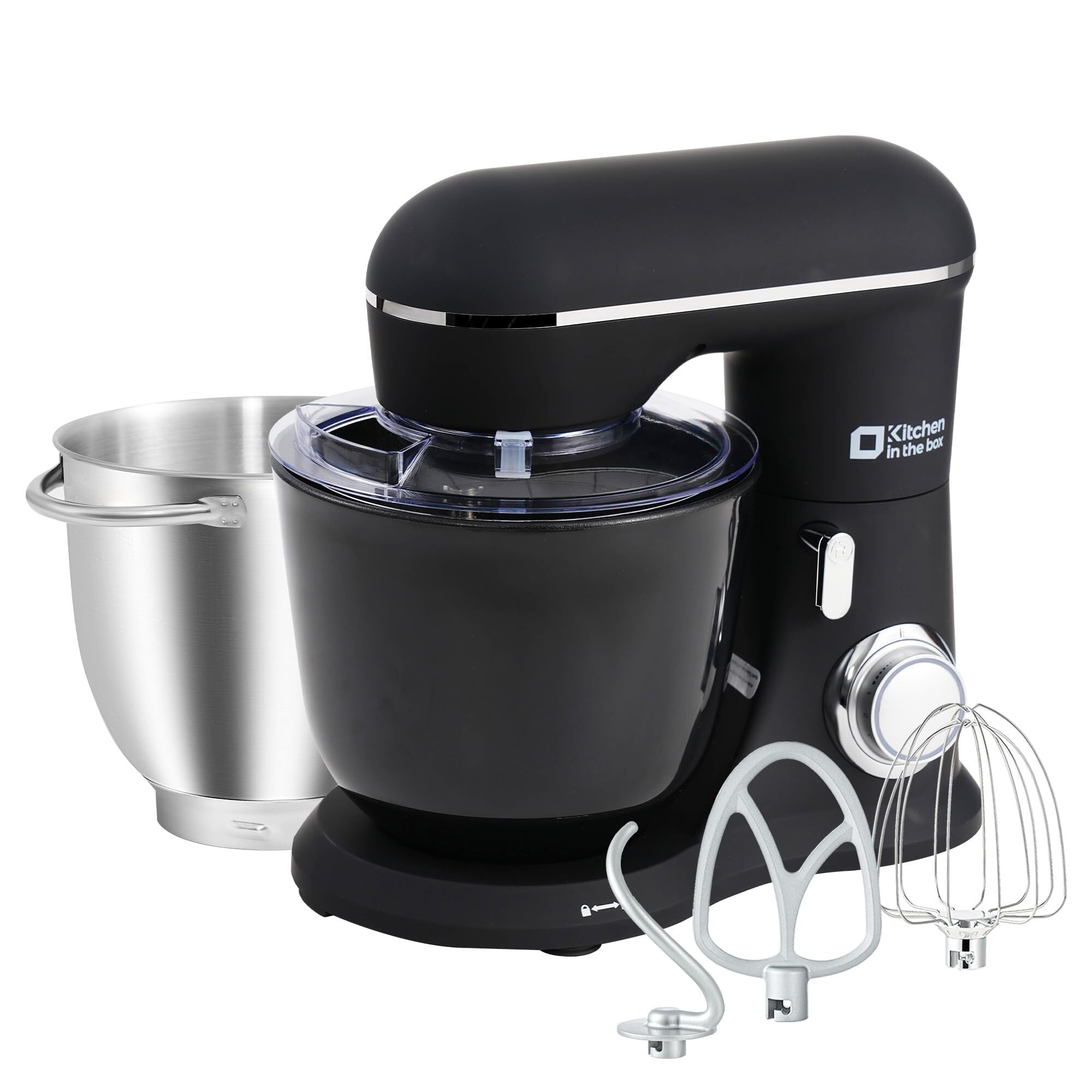 Kitchen in the box スタンドミキサー 4.5L+5Lダブルボウル 大容量 卓上ミキサー 10段階スピード調節 3種類アタッチメント付き 家庭用 業務用 こねる/混ぜる/泡立てる ブラック