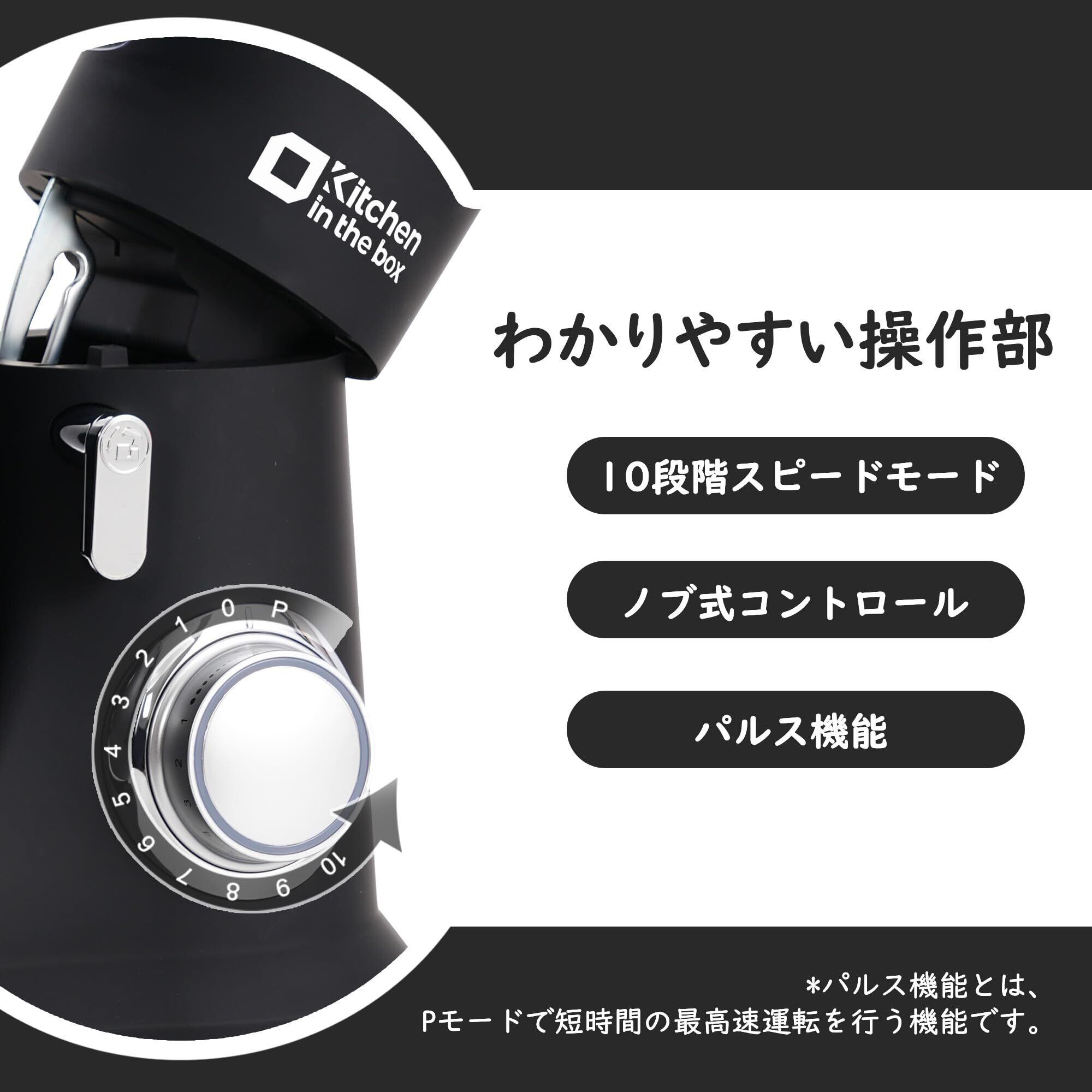 【10段階スピードモード】10段階の速度調節モードに加え、便利なパルス機能(Pモードで短時間最高速運転)を搭載!繊細な泡立てから力強いこね作業まで、思い通りの仕上がりを実現。仕上がりの精度を求めるあなたにピッタリの一台です!